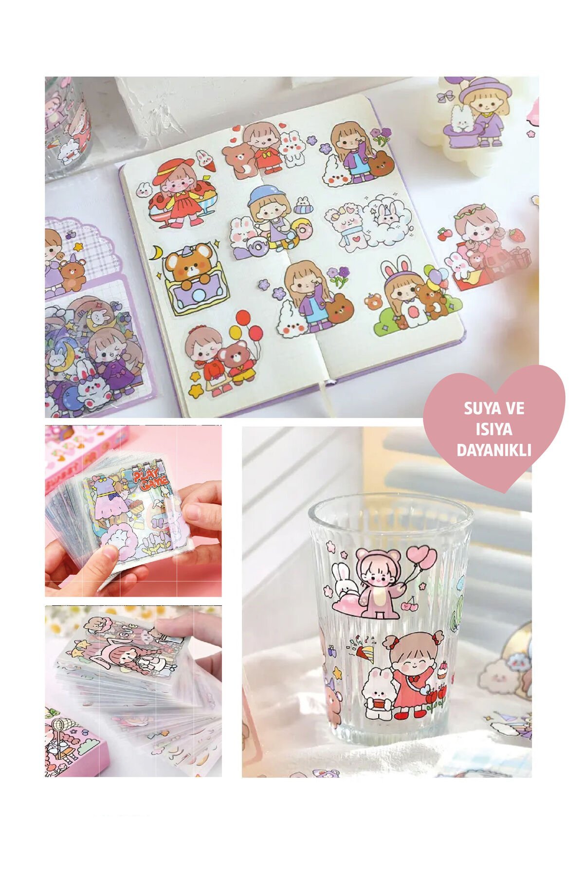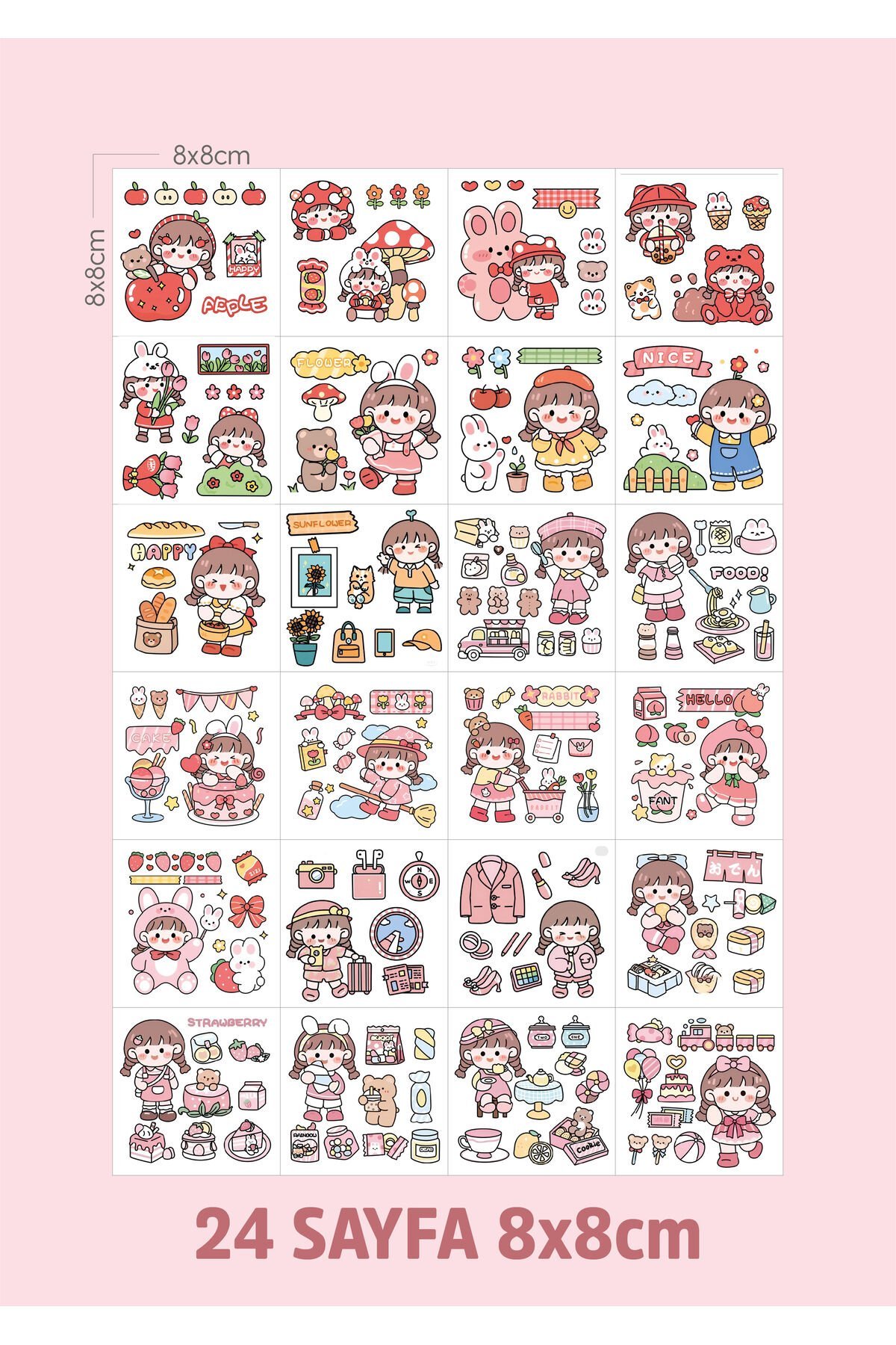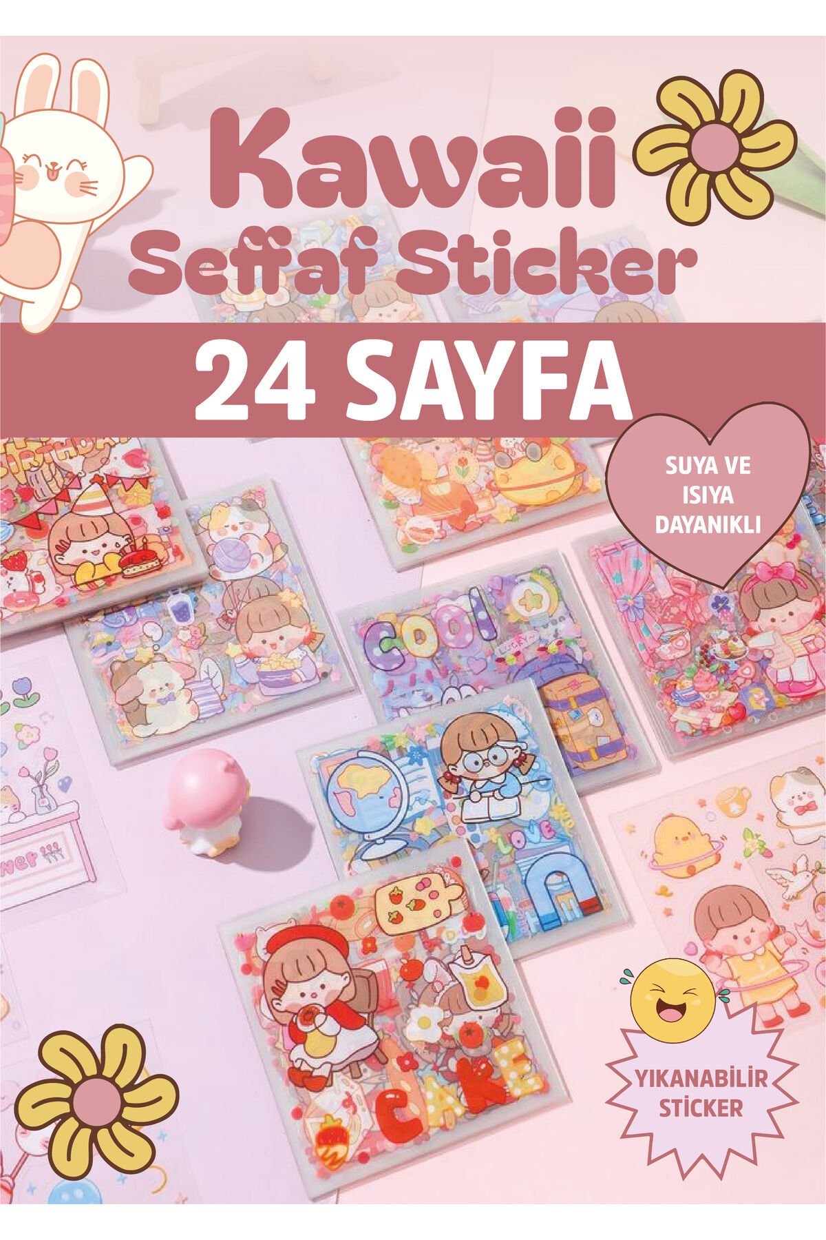 24 Sayfa Şeffaf Kawaii Sevimli Suya Dayanıklı Sticker Etiket Seti- Laptop Telefon Defter Etiketi -