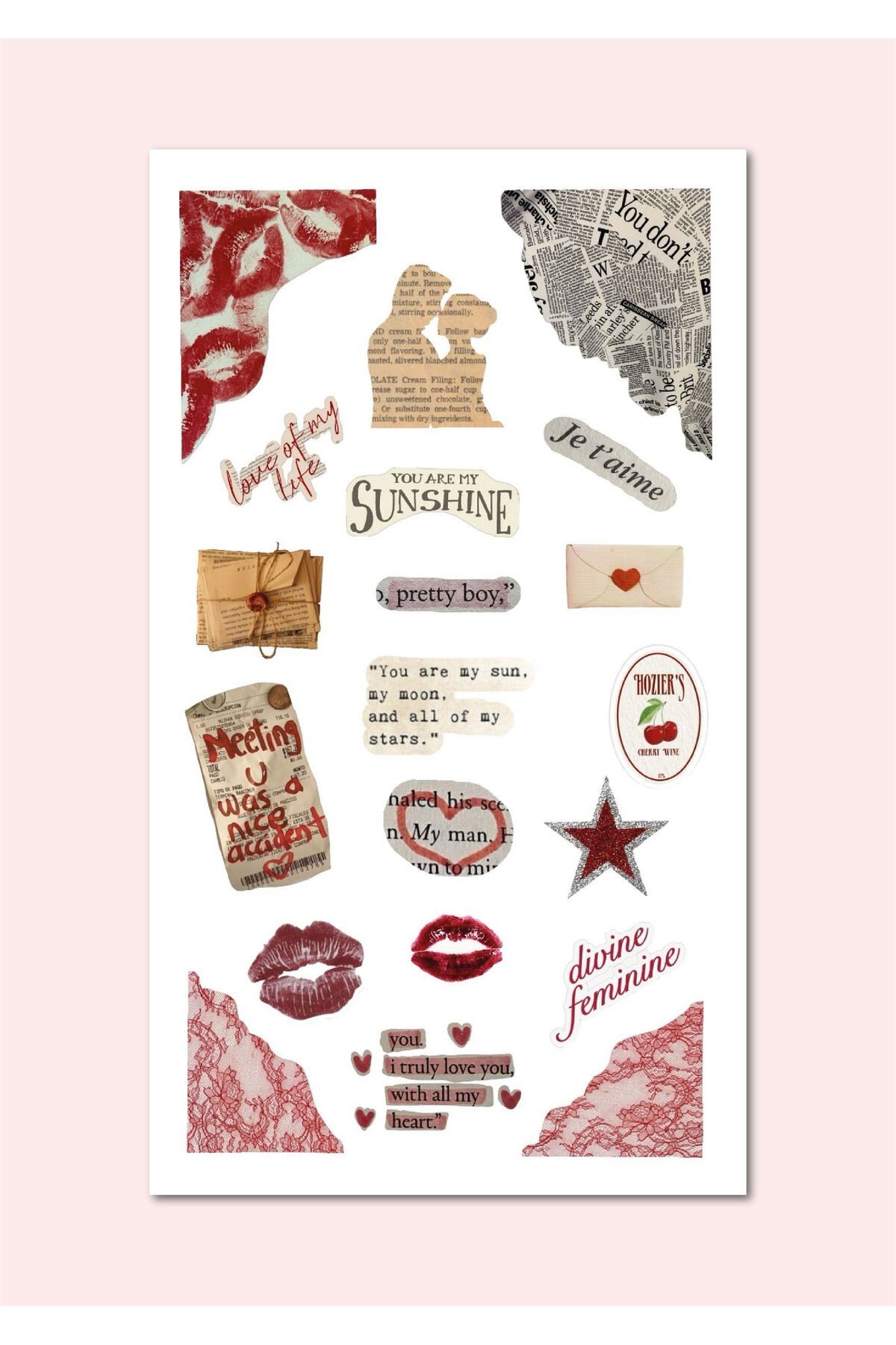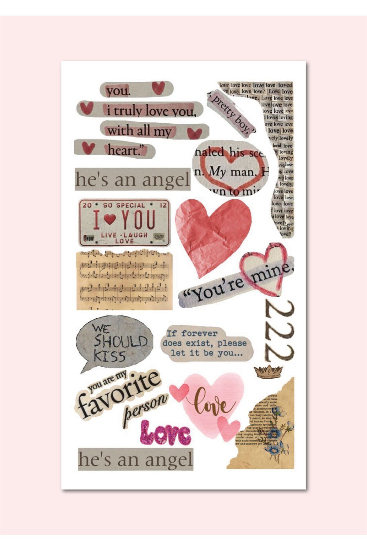 5'Li ''Love Vibes'' Vintage Sticker Planner Ajanda Bullet Journal Için Uygun Set 2 -