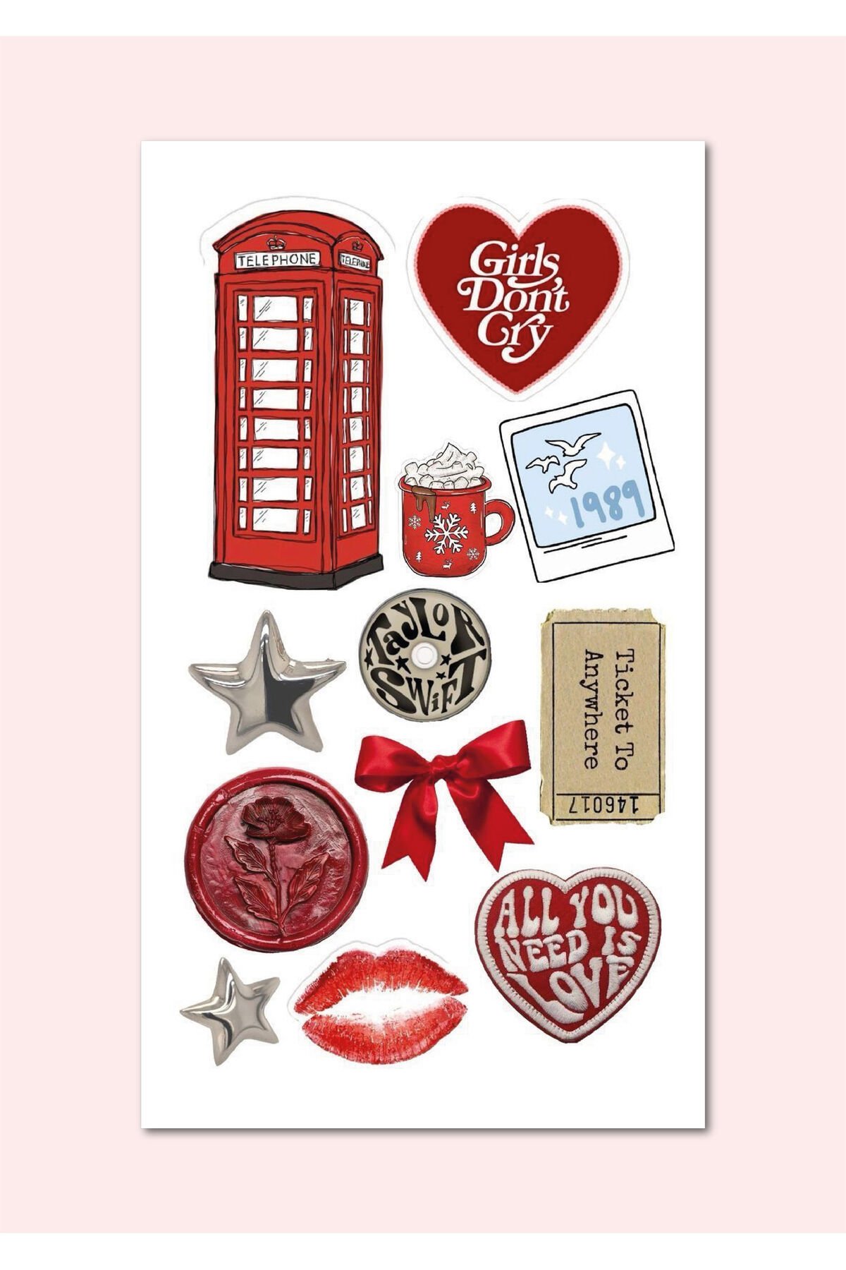 5'Li ''Love Vibes'' Vintage Sticker Planner Ajanda Bullet Journal Için Uygun Set 3 -