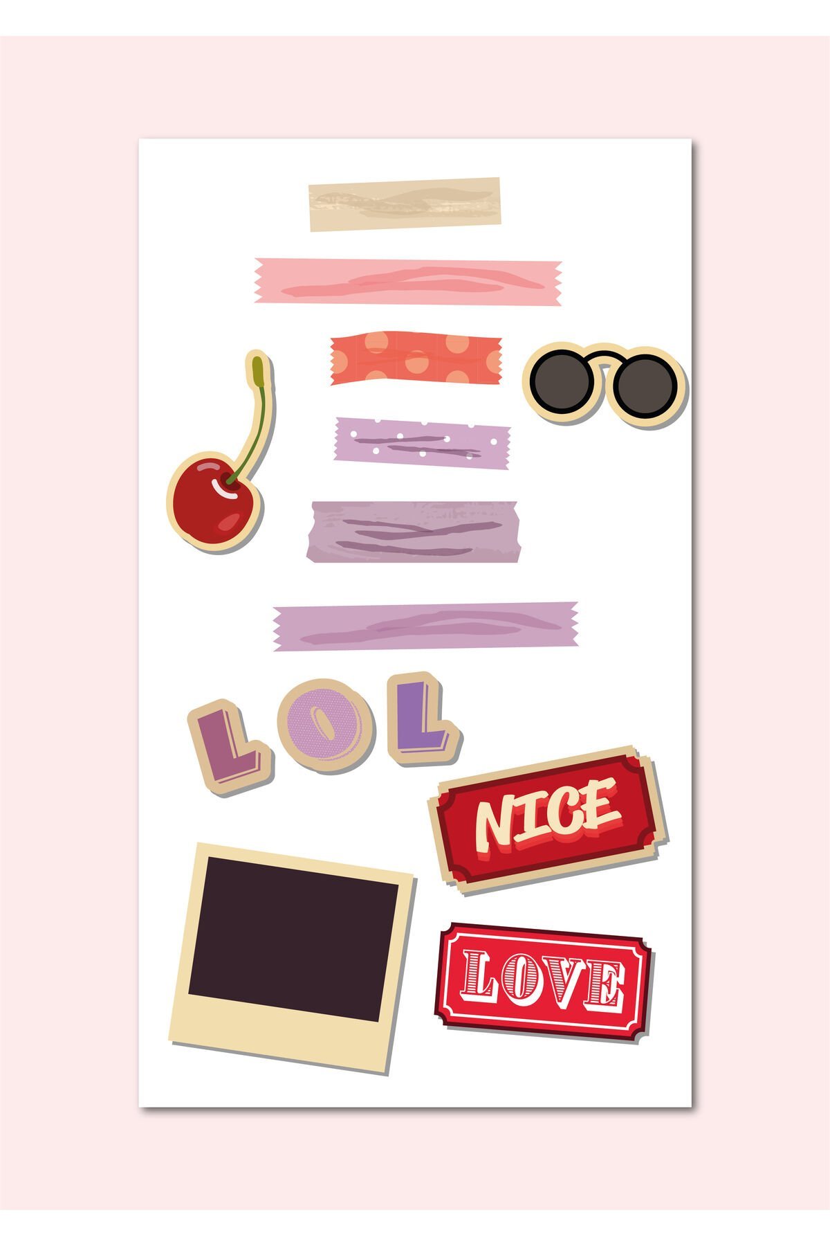 5'Li ''Pink Vibes'' Vintage Sticker Planner Ajanda Bullet Journal Için Uygun Set 1 -