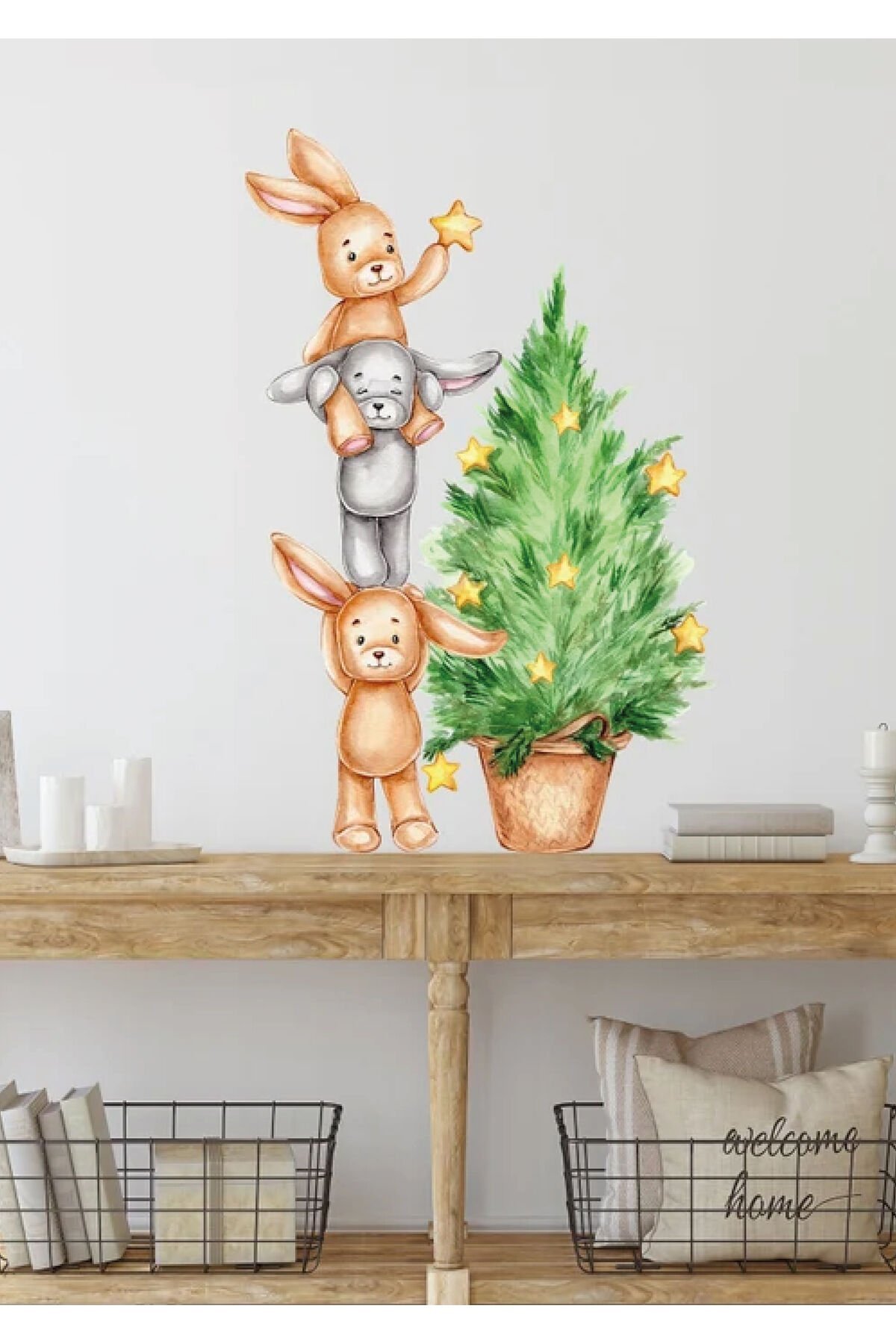 Ağaç Süsleyen Ayıcık Çocuk Odası Duvar Stickerı - Tek Ebat