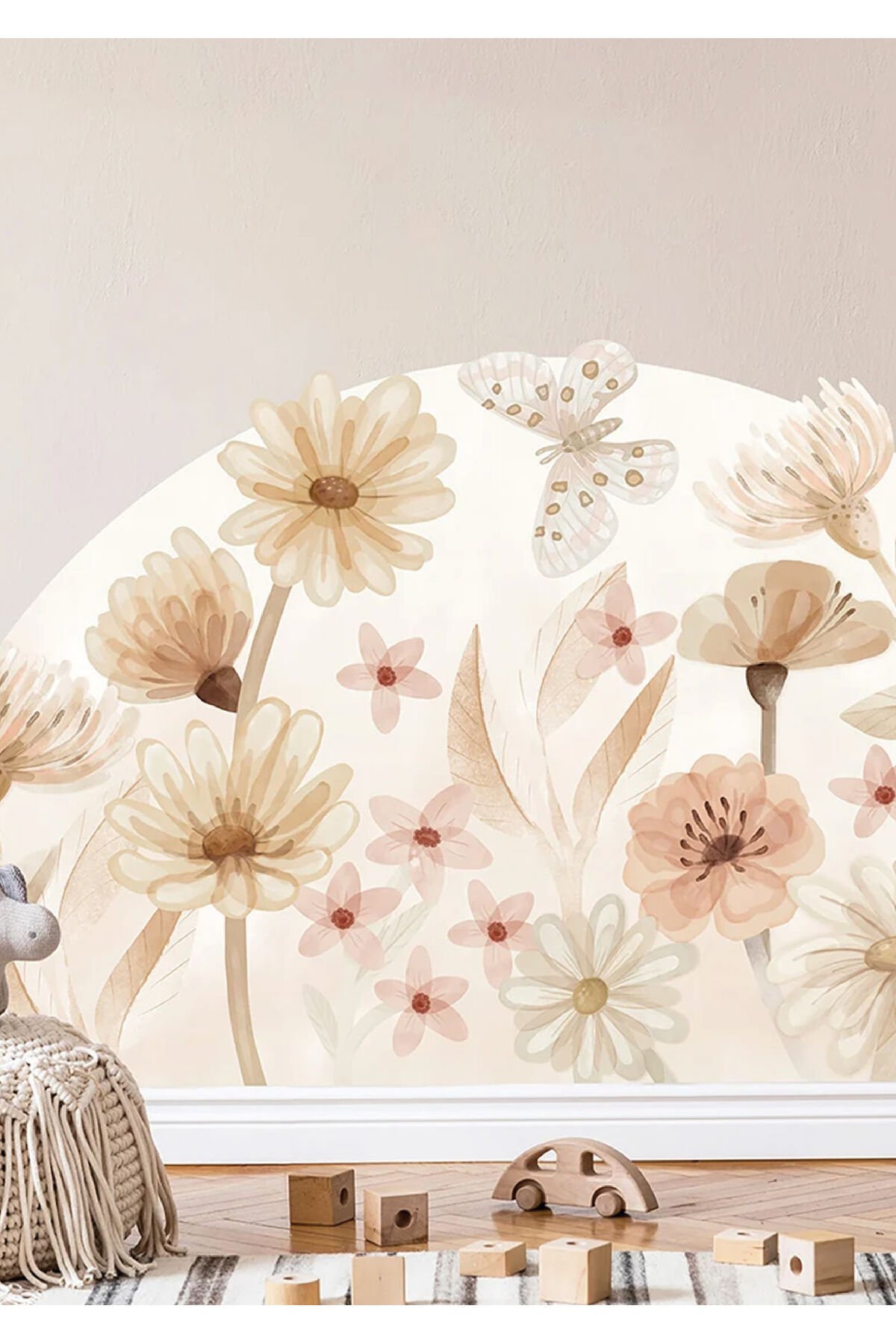 Bohem Oval Çiçekler Çocuk Odası Duvar Stickerı - Tek Ebat