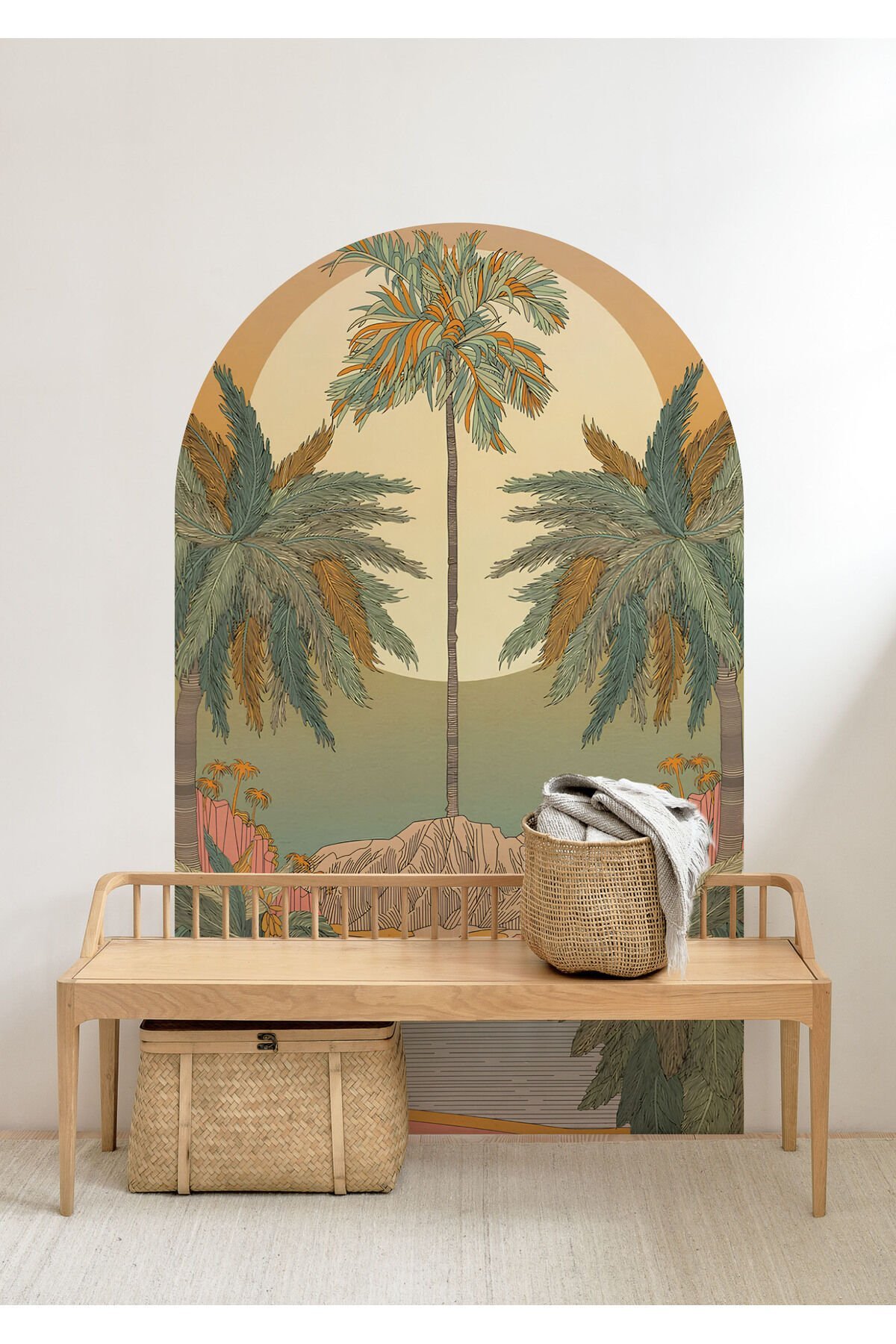 Bohem Oval Palmiye Adası Duvar Stickerı - 60 x 95