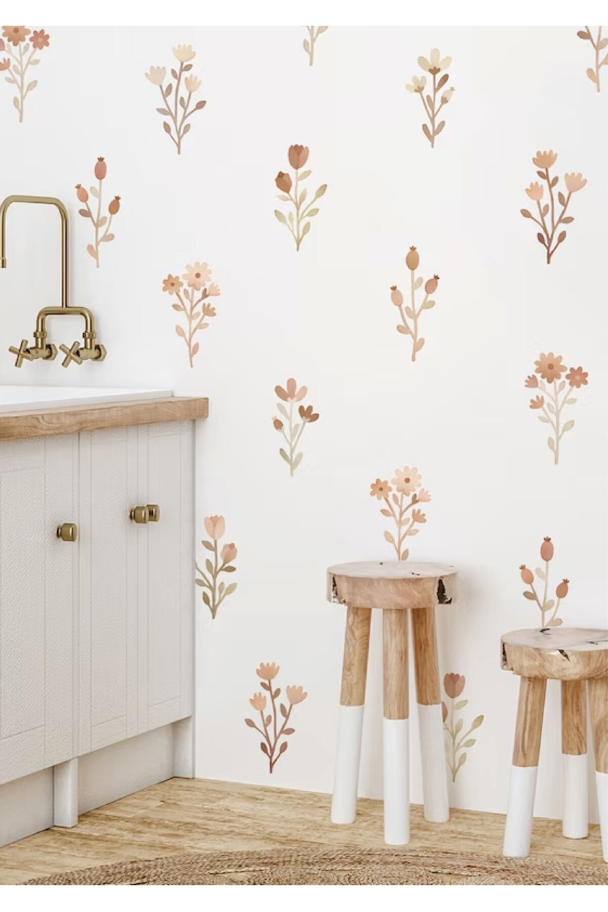 Bohem Papatyalar Çocuk Odası ve Ev Dekorasyonu Duvar Stickerı - 50 x 100