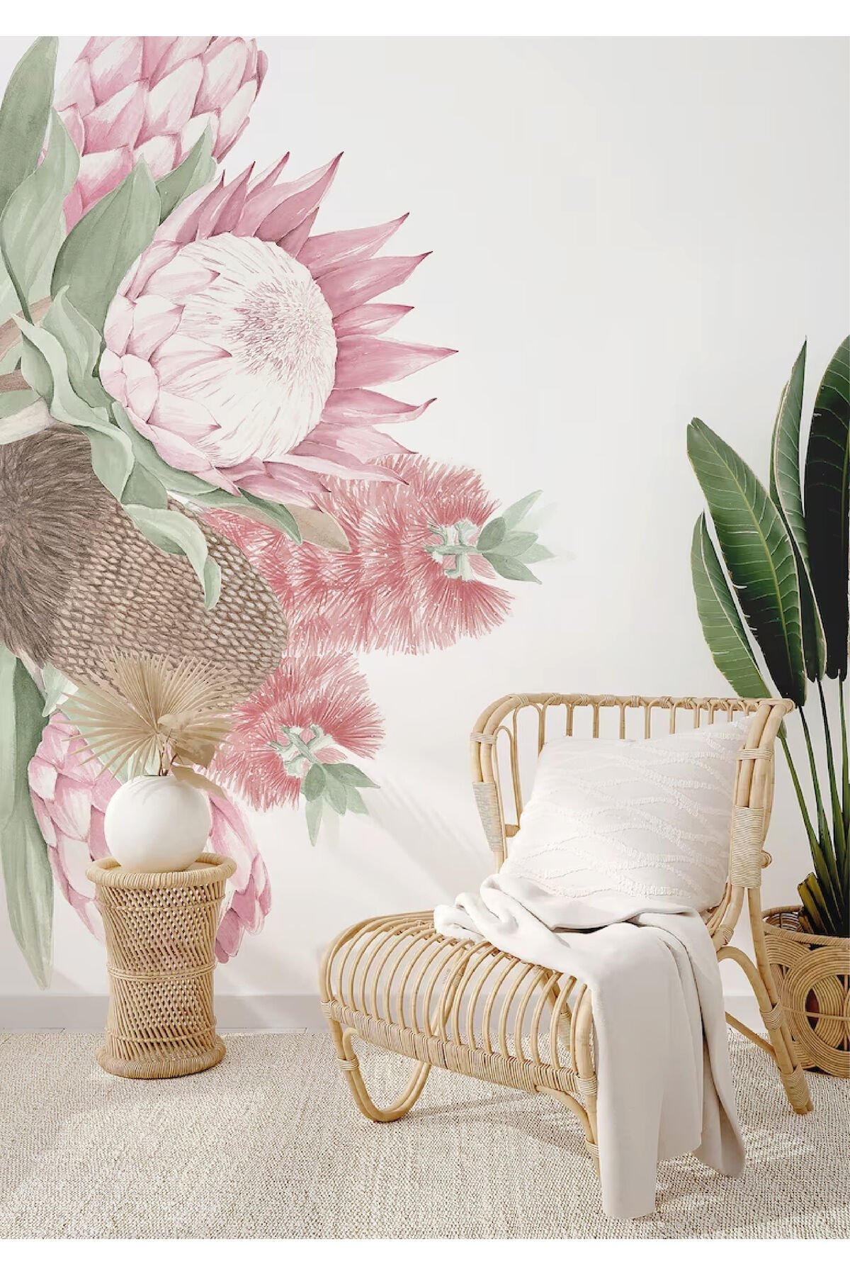 Bohem Pembe Büyük Çiçekler Çocuk Odası Duvar Stickerı - 100 x 160