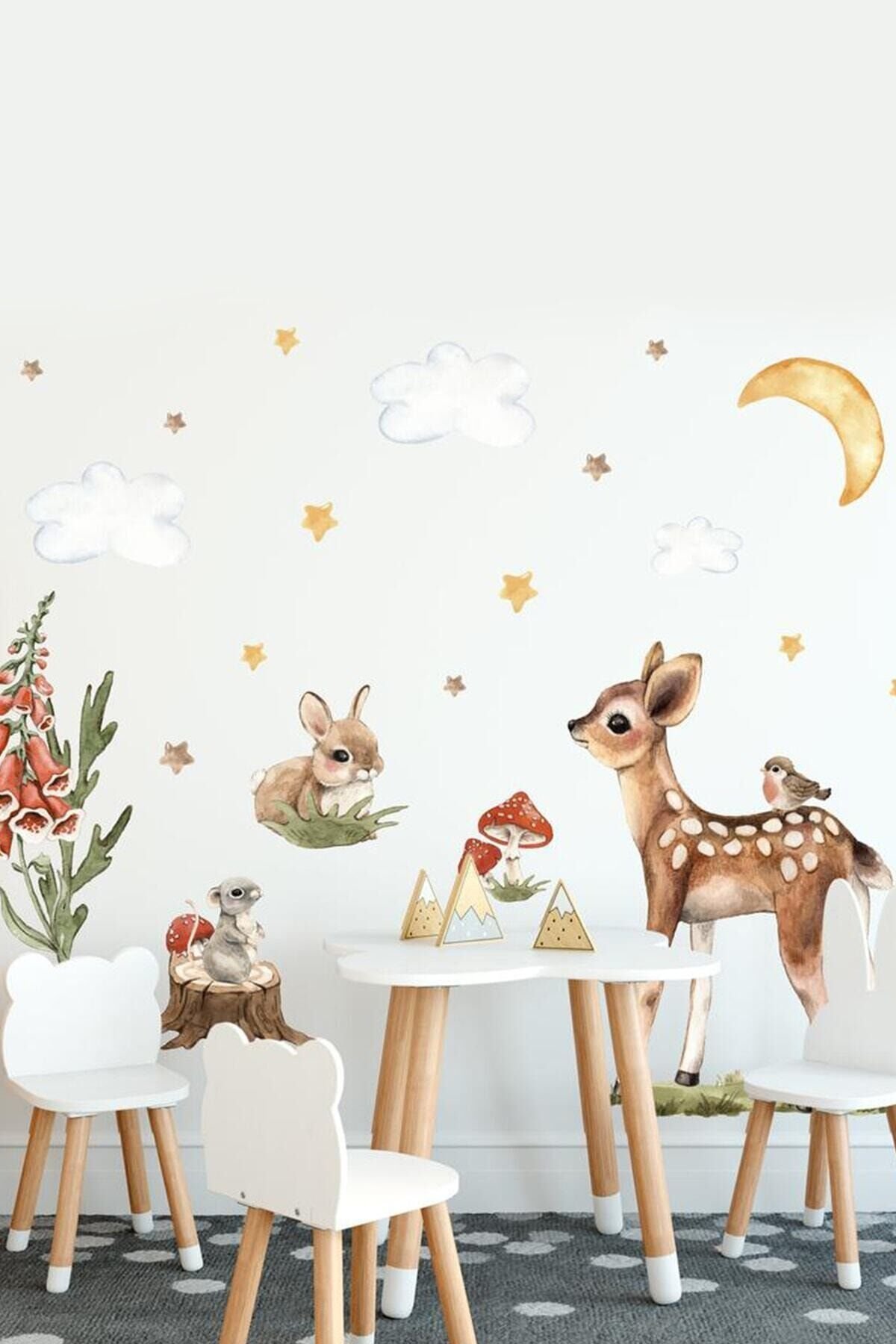 Ceylanlı Orman Arkadaşları Duvar Stickerı - 63 x 100
