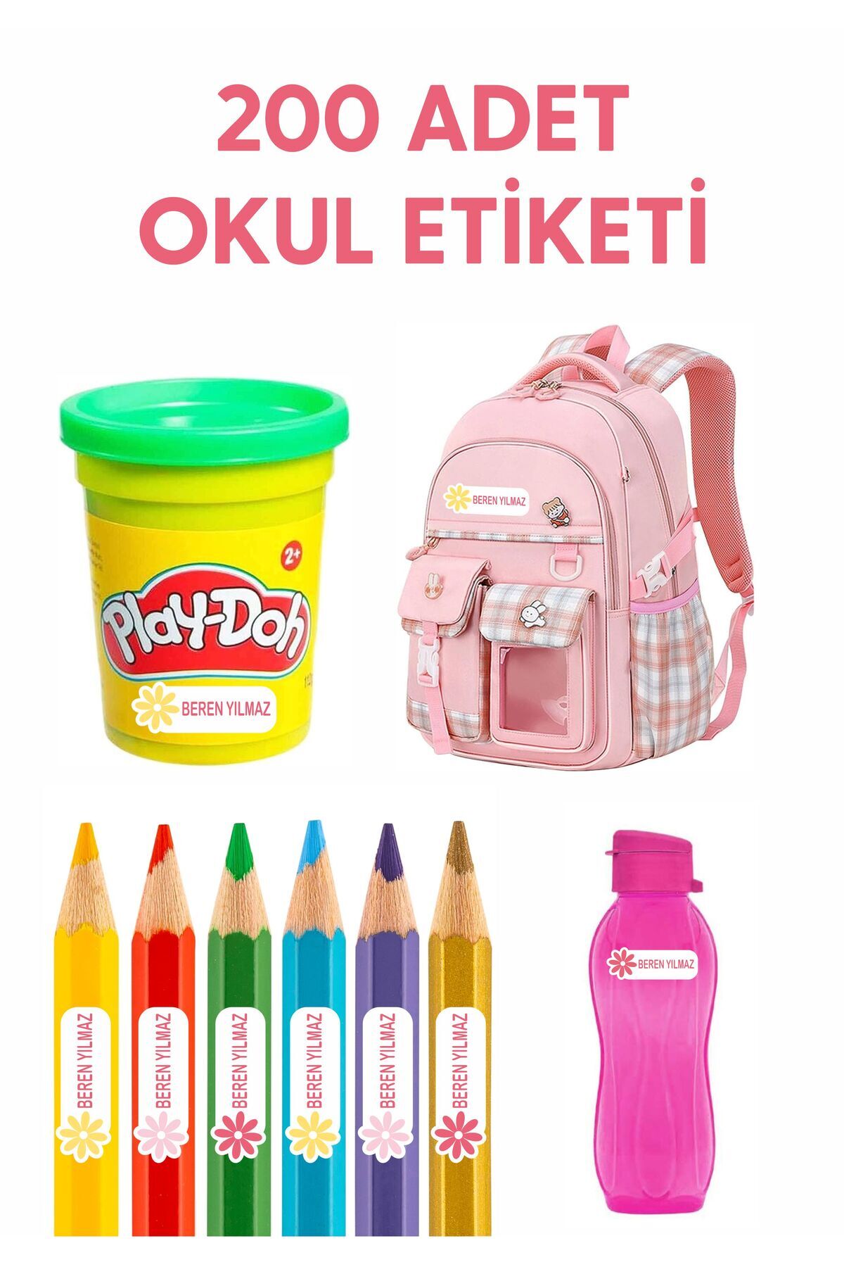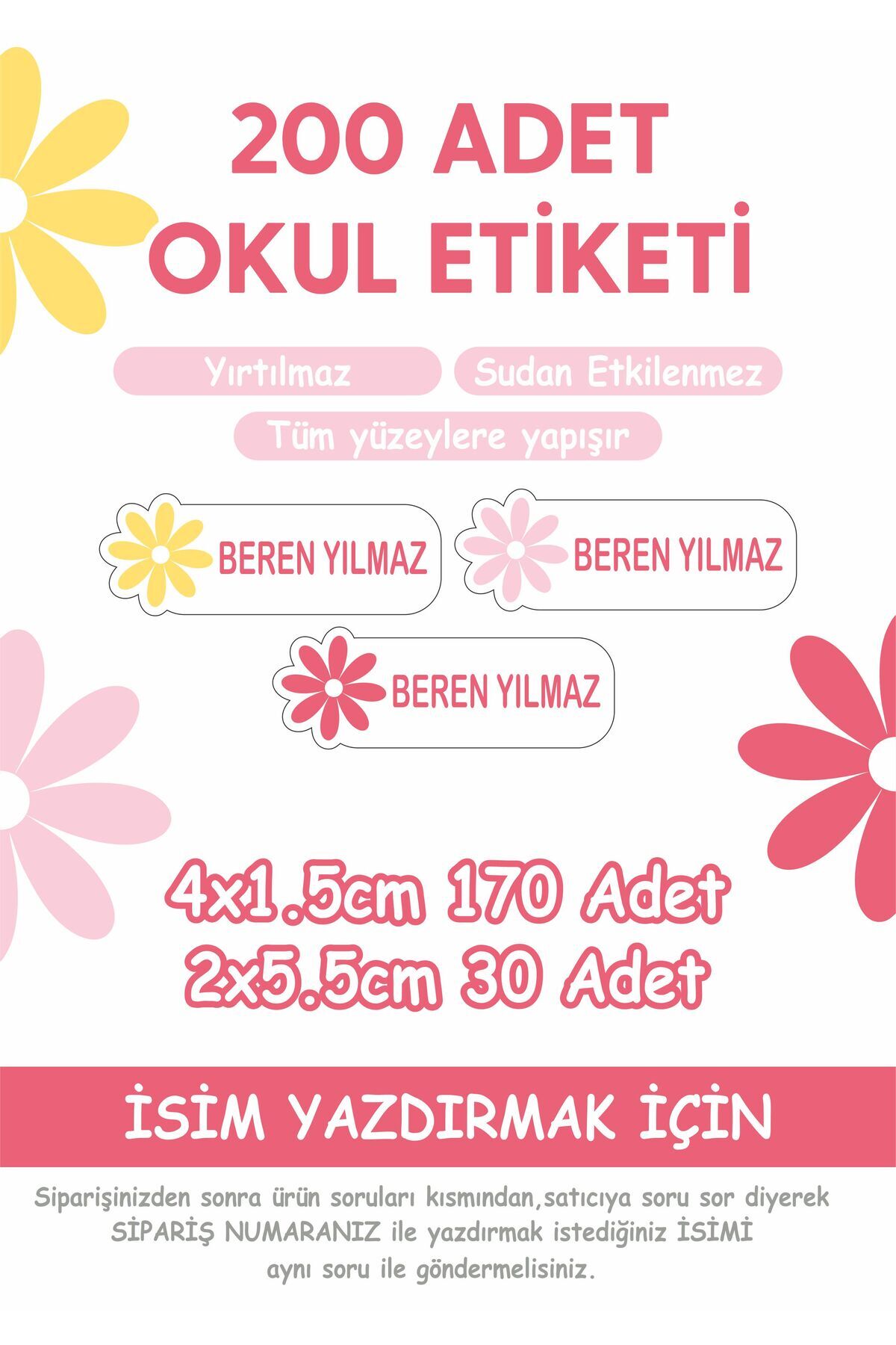 Çiçek Temalı Okul Etiketi Kalem Defter Özel Isim Yazılabilen Etiket -