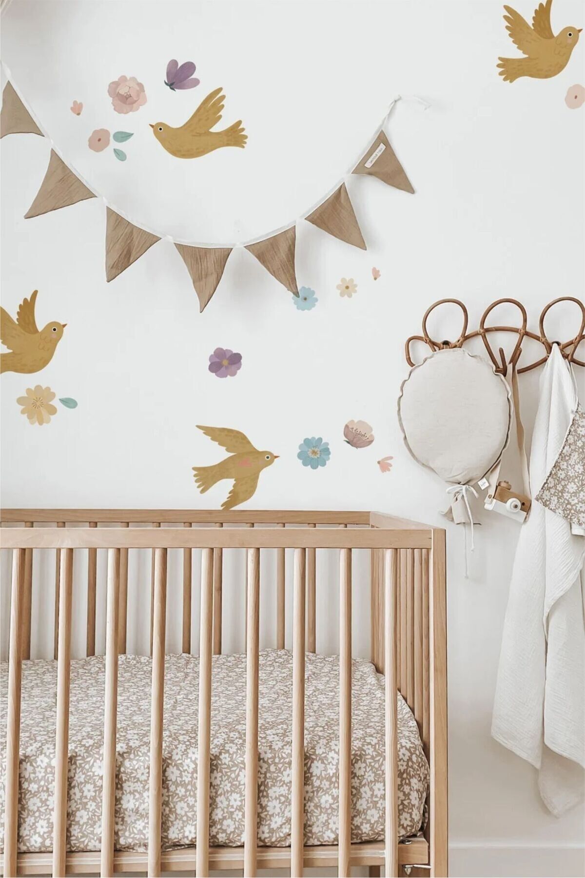 Çiçekli Kuşlar Çocuk Odası Duvar Stickerı - 50 x 100