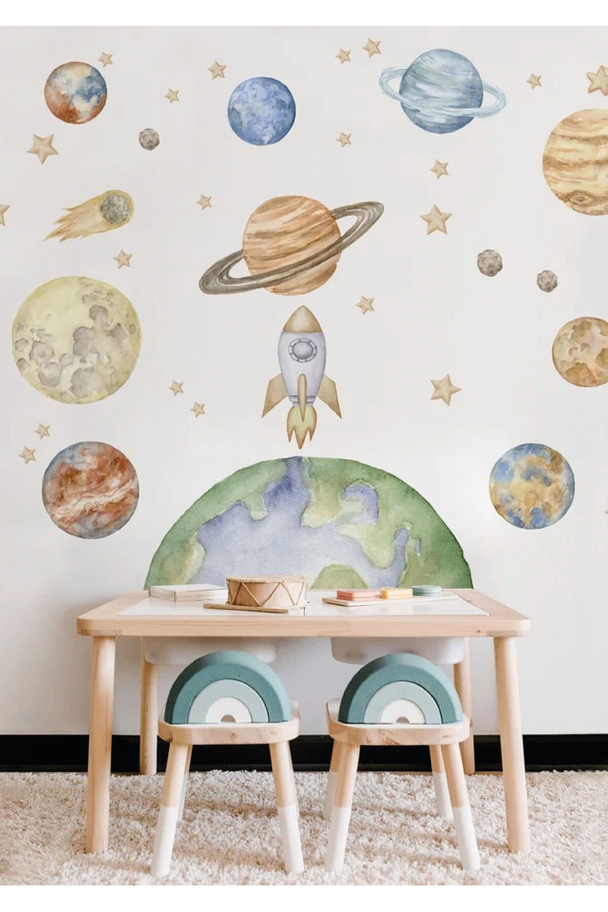 Dış Uzay Çocuk Odası Duvar Stickerı - 70 x 100