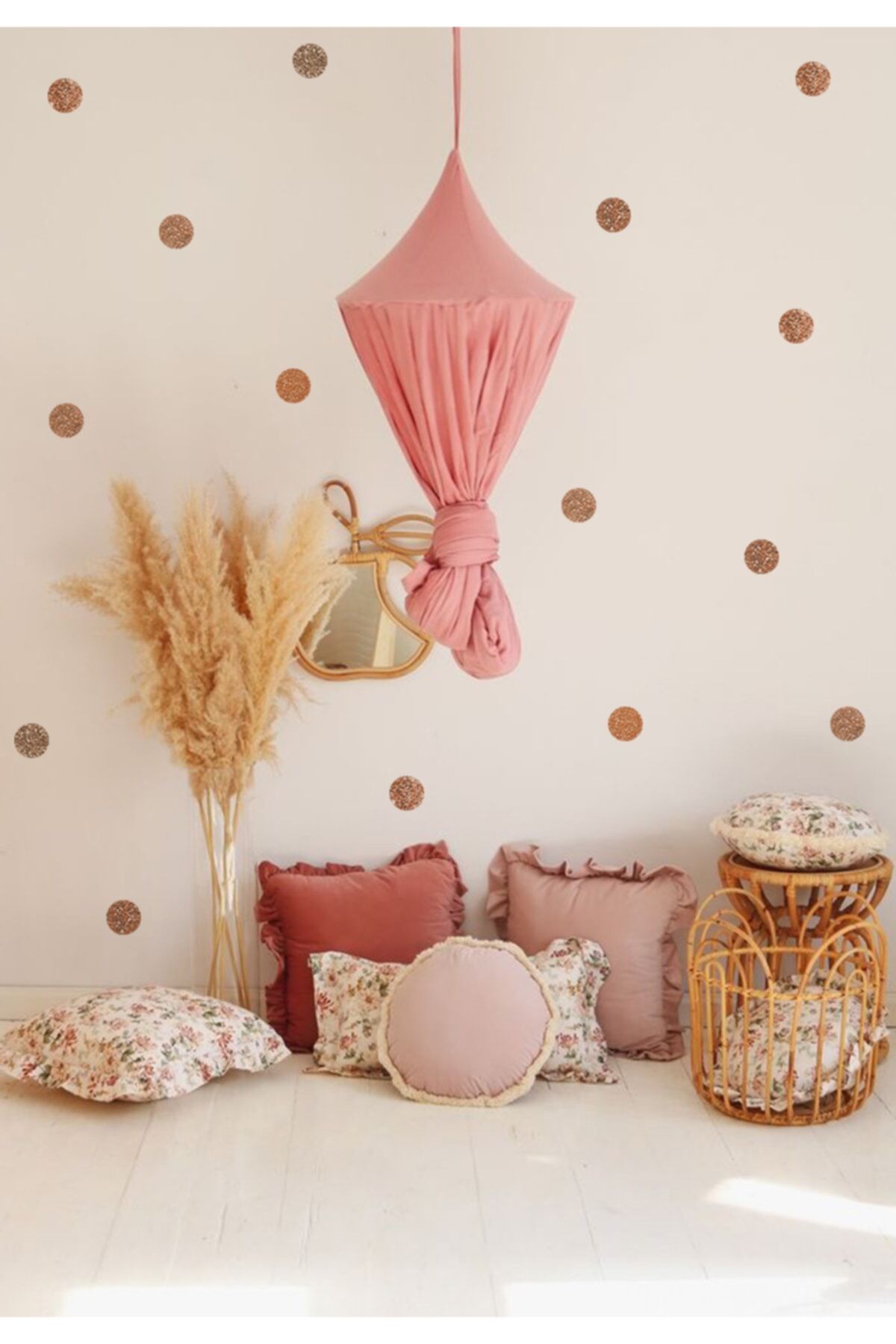 Gold Simli Puantiyeler Çocuk Odası Duvar Stickerı - 50 x 100