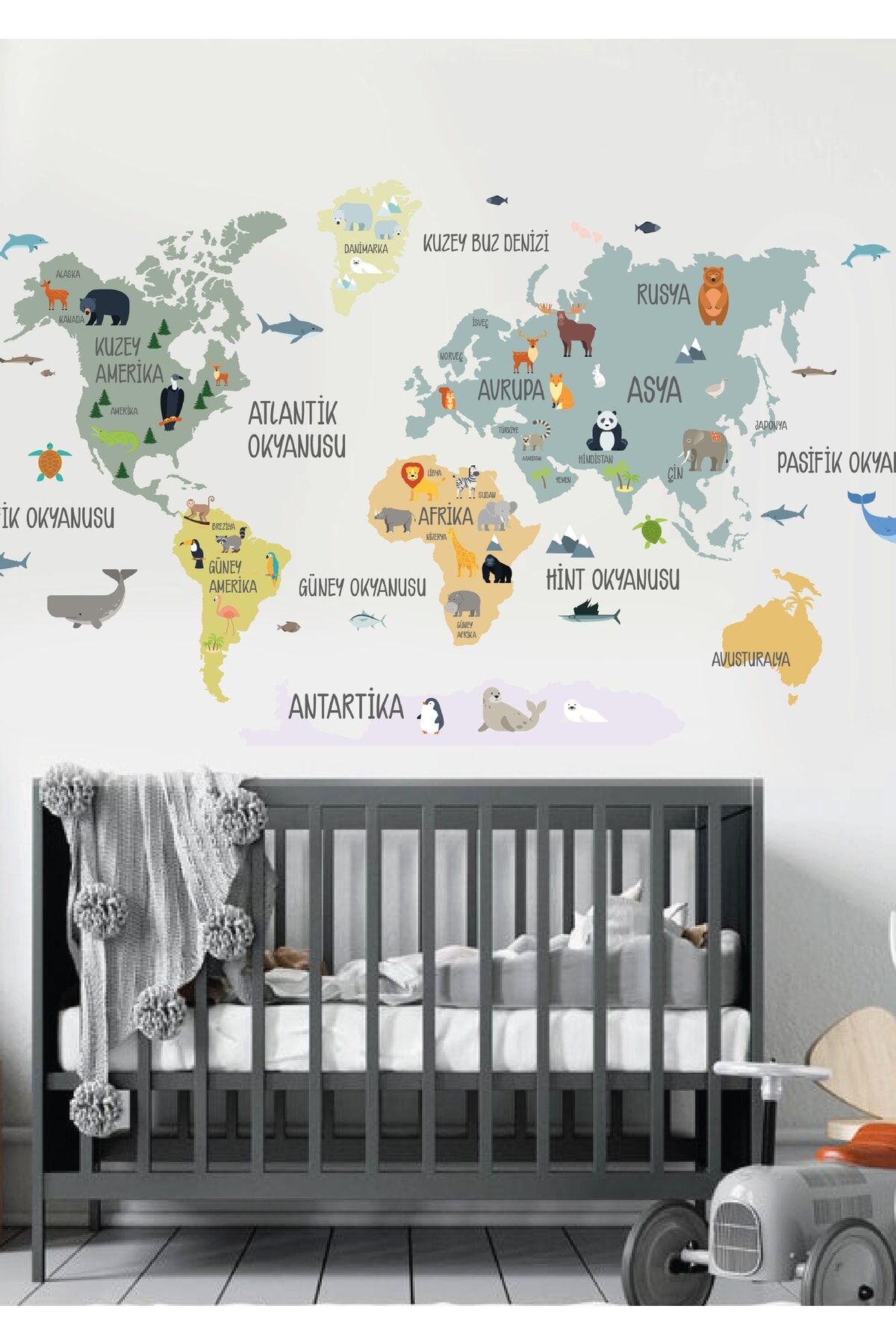 Harita Çocuk Odası Duvar Stickerı - 100 x 100