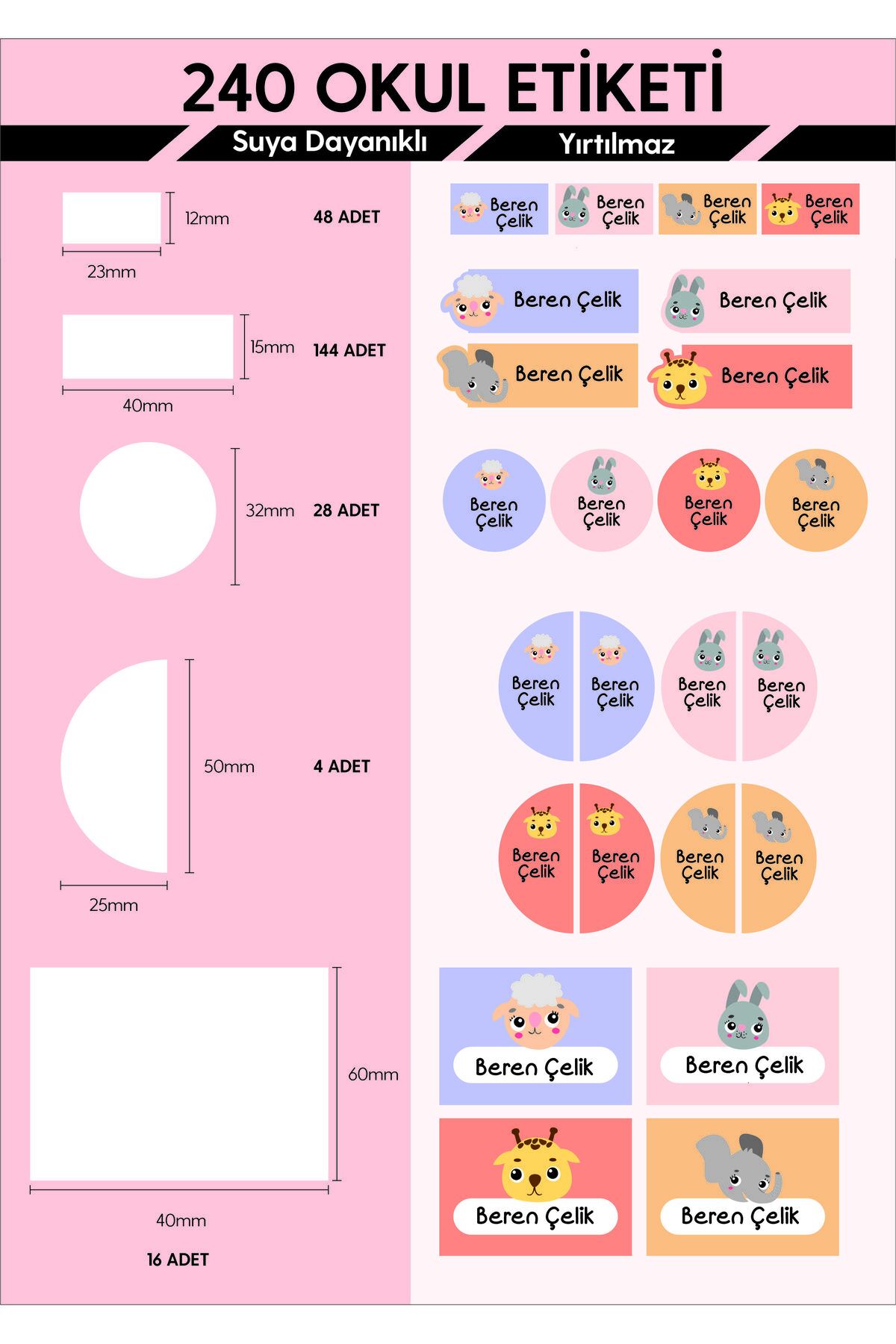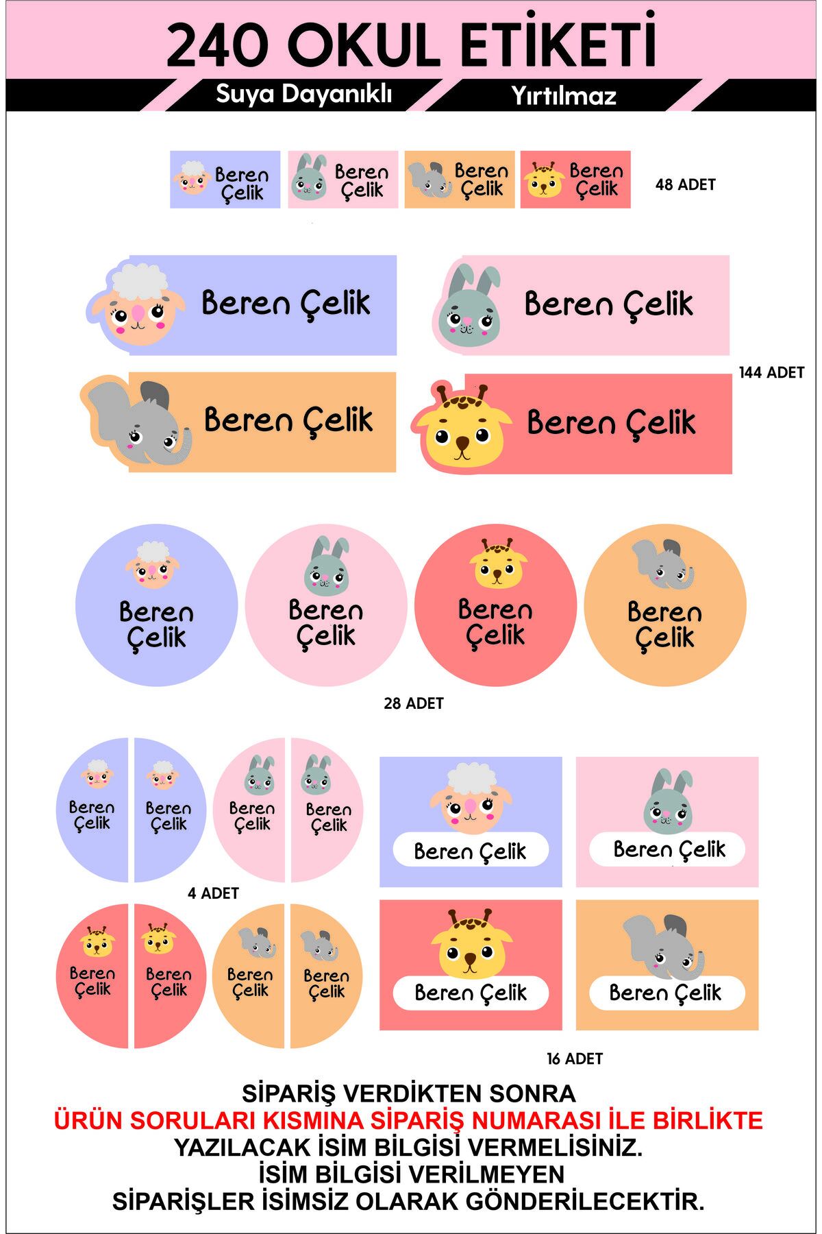 Hayvan Figürlü Okul Etiketi Kalem Defter Özel İsim Yazılabilen Etiket -