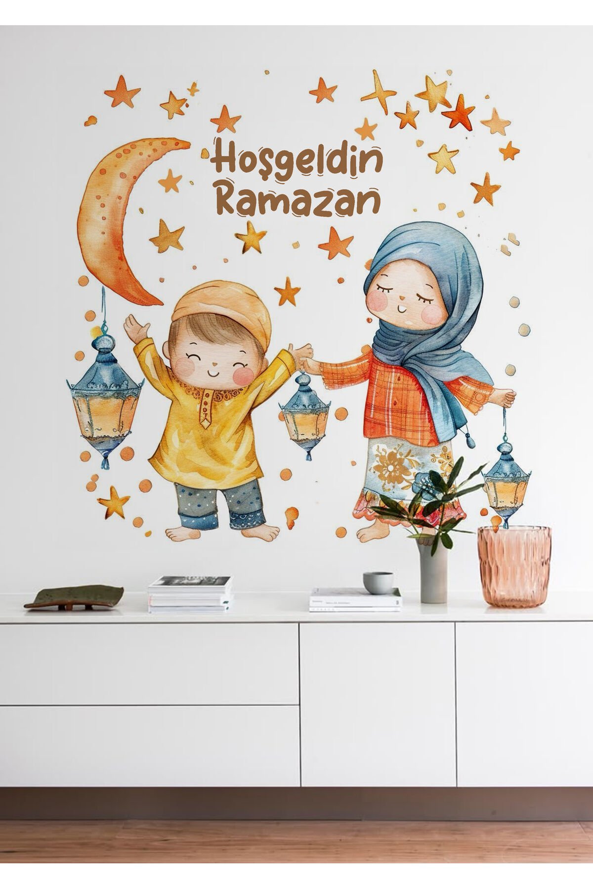 Hoşgeldin Ramazan Bayramı Yapışkanlı Sticker Duvar Cam Dolap Çıkartması Süsü - Tek Ebat