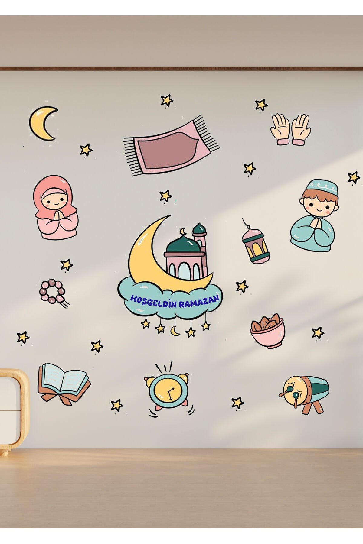 Hoşgeldin Ramazan Bayramı Yapışkanlı Sticker Duvar Cam Dolap Çıkartması Süsü - Tek Ebat