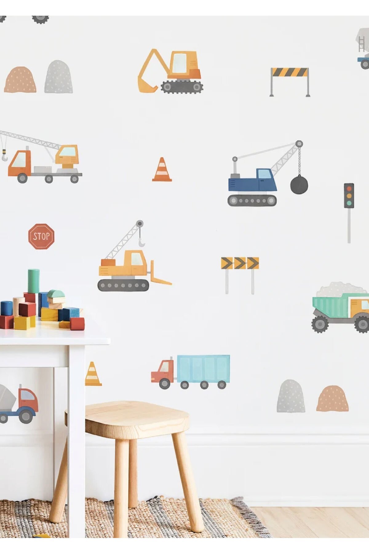 İnşaat Kamyonları Çocuk Odası Duvar Sickerı - 50 x 100