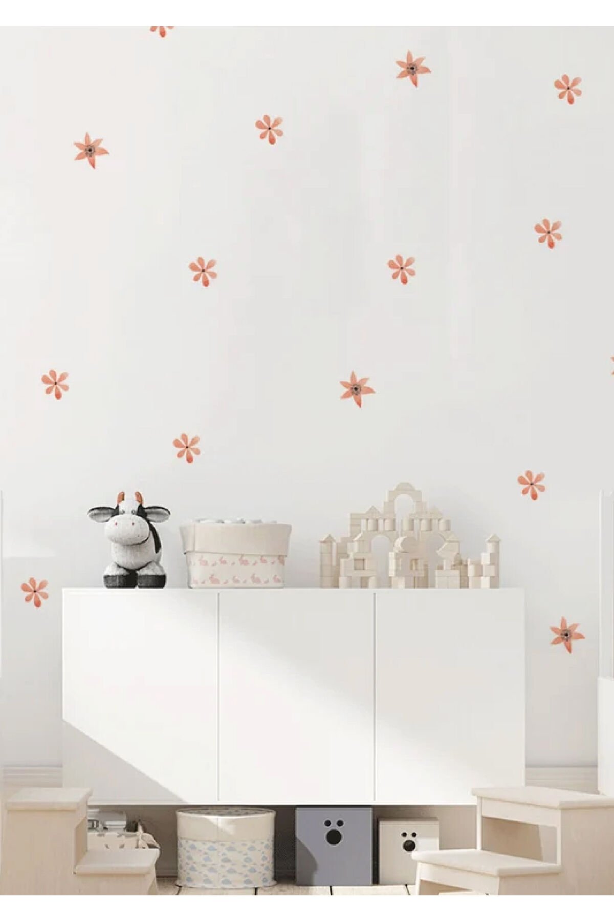 Kırmızı Pastel Çiçekler Çocuk Odası Duvar Stickerı - 50 x 100
