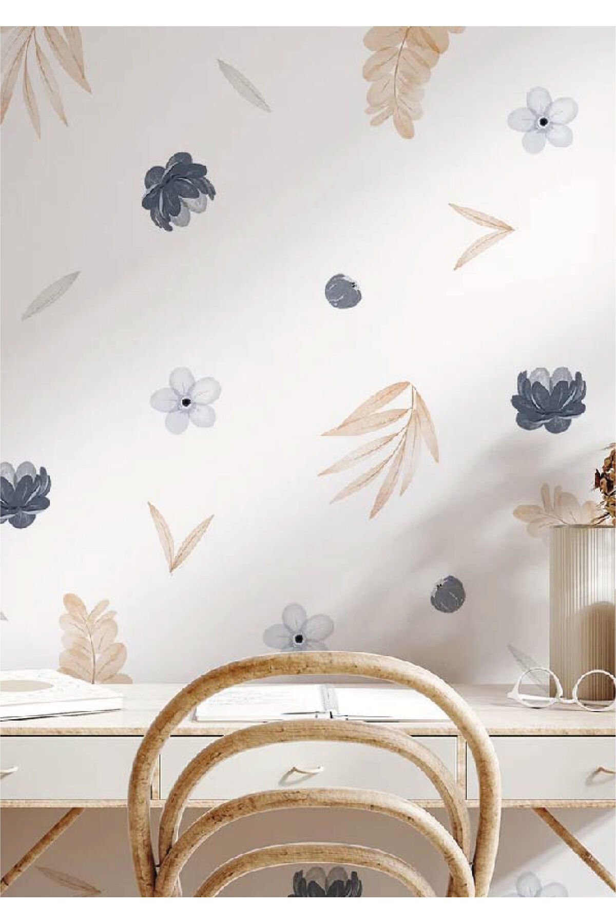 Mavi Çiçekler Çocuk Odası Duvar Stickerı - 60 x 95