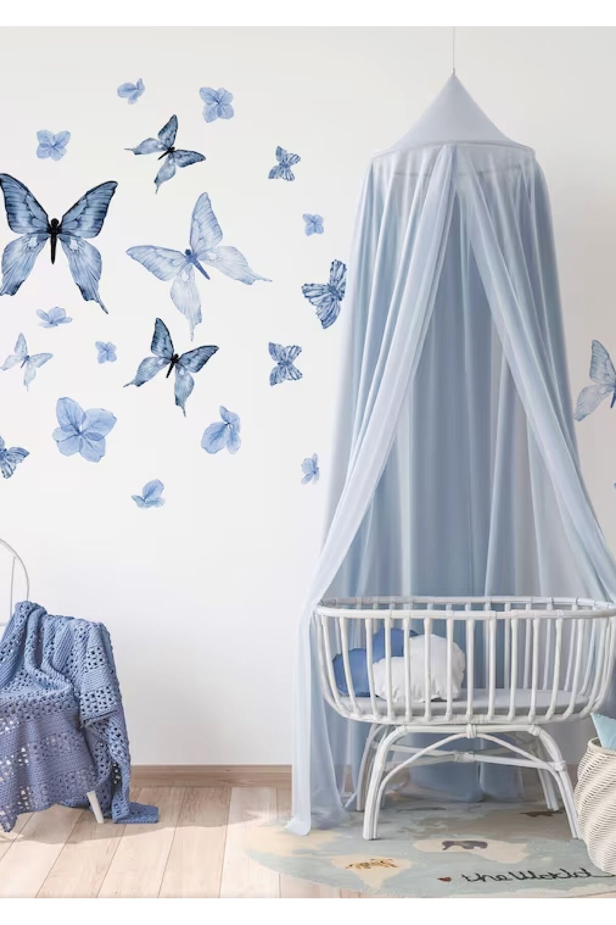 Mavi Kelebekler Çocuk Odası Duvar Stickerı - 50 x 100
