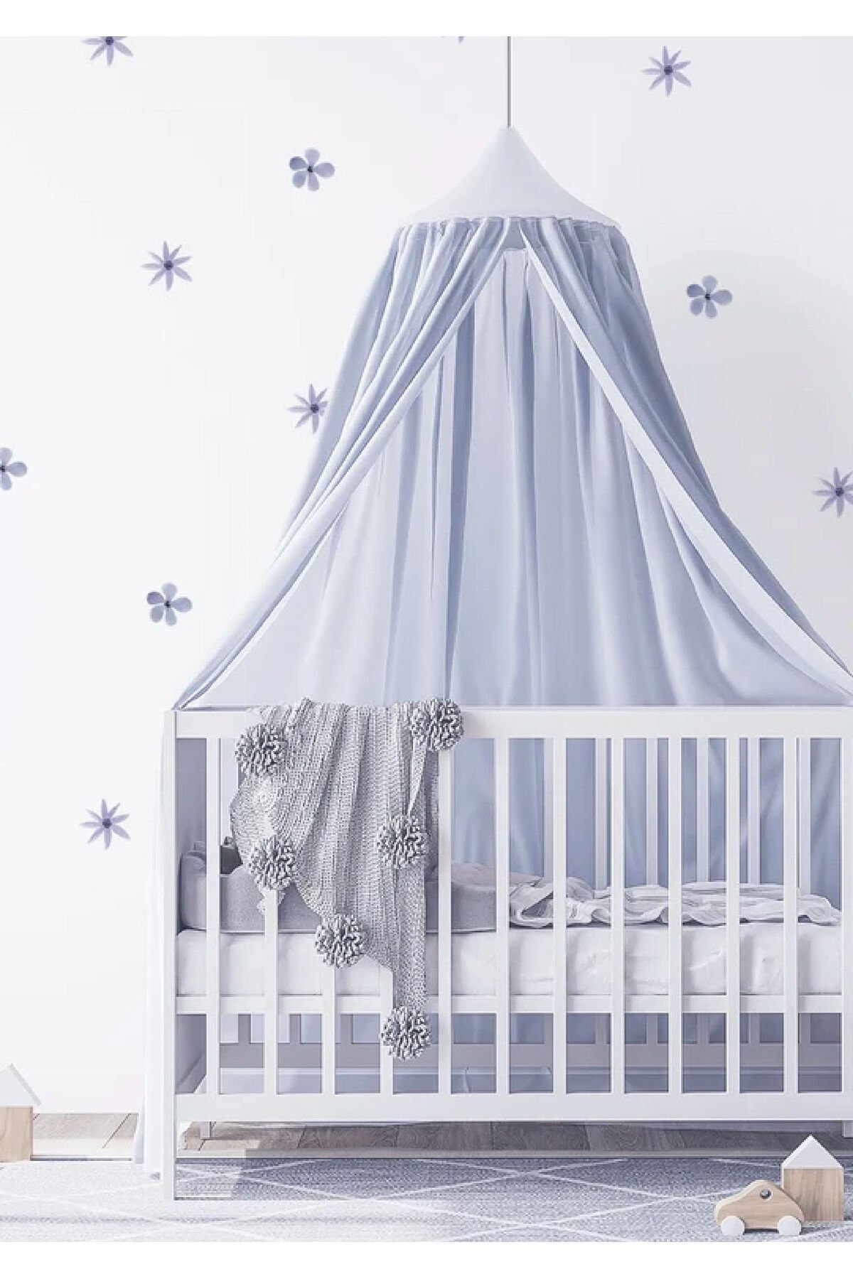 Mavi Pastel Çiçekler Çocuk Odası Duvar Stickerı - 50 x 100