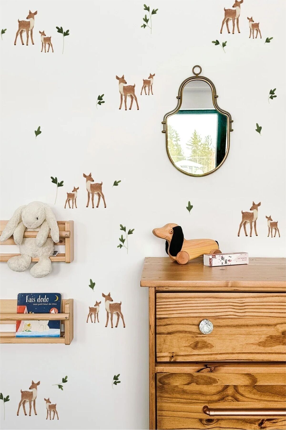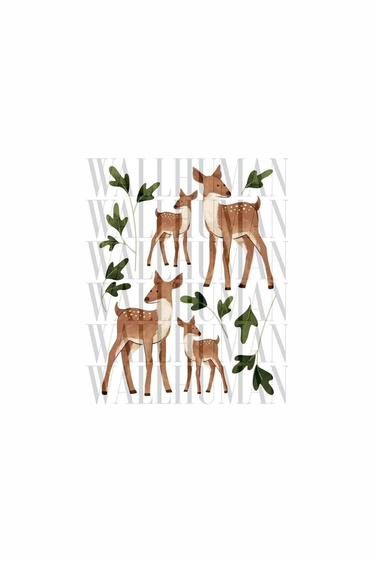 Mini Bambiler ve Yapraklar Çocuk Odası Duvar Stickerı - 50 x 100