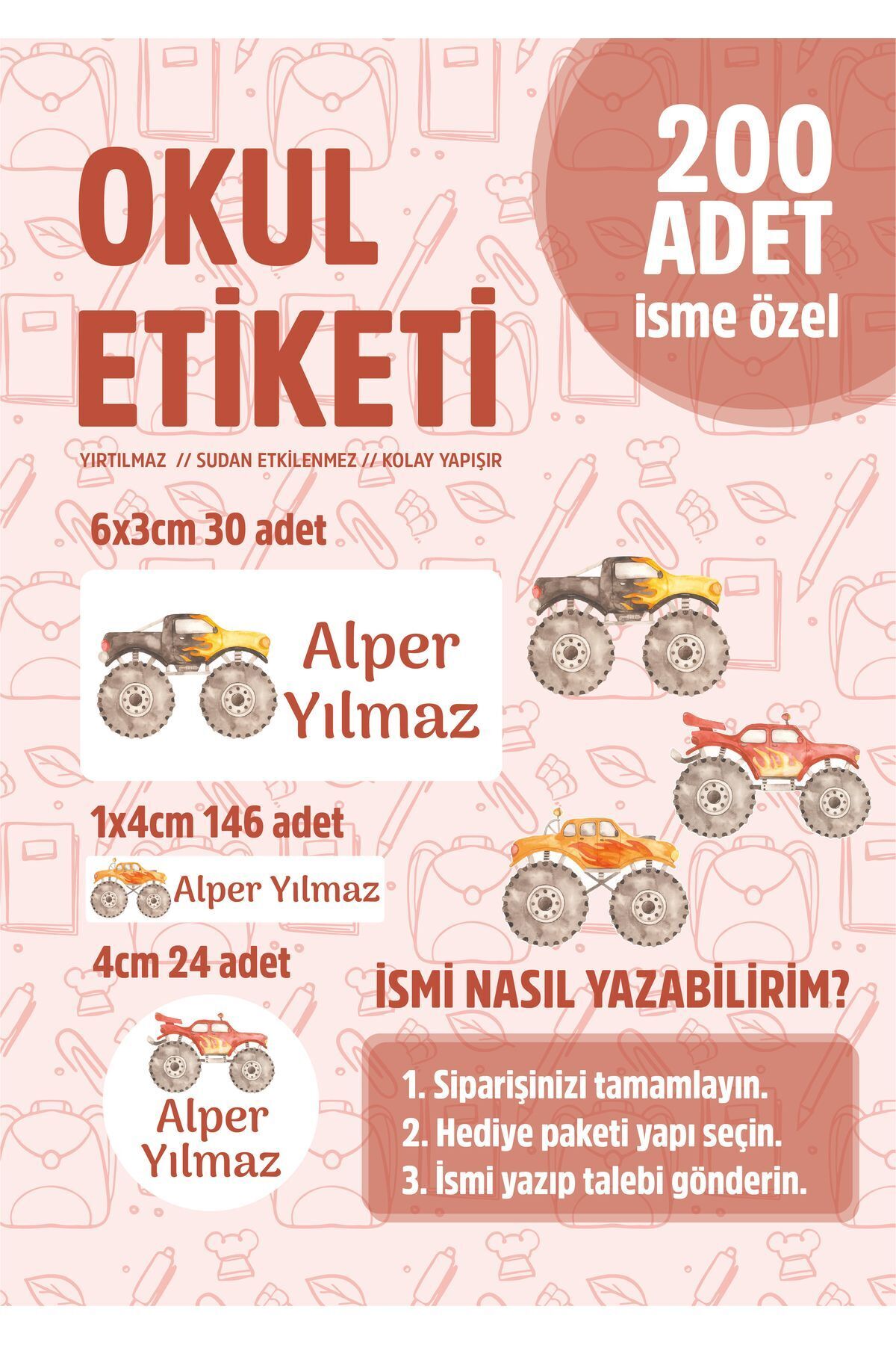 Okul Kalem Defter Etiketi Yarış Arabaları Temalı Özel Isim Yazılabilen Etiket - 200 Adet -