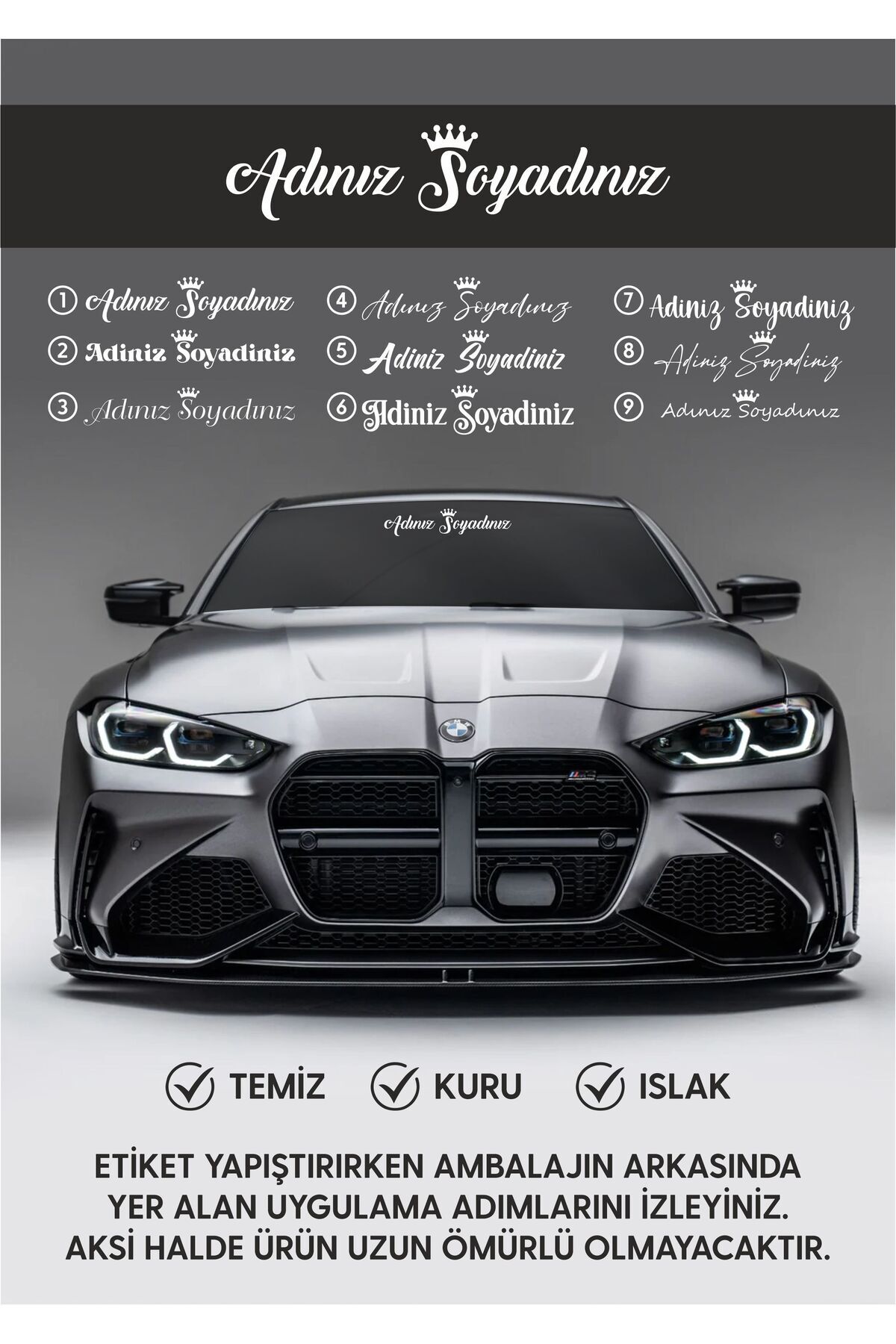 Oto Sticker Size Özel Isim Stance Taçlı Orta Boy Cam Yazısı Araba Stickeri 30cm -