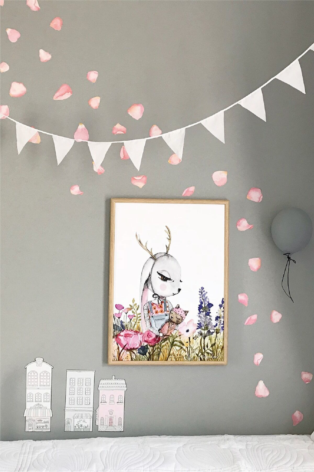 Pembe Gül Yaprakları Çocuk Odası Duvar Stickerı - 50 x 100