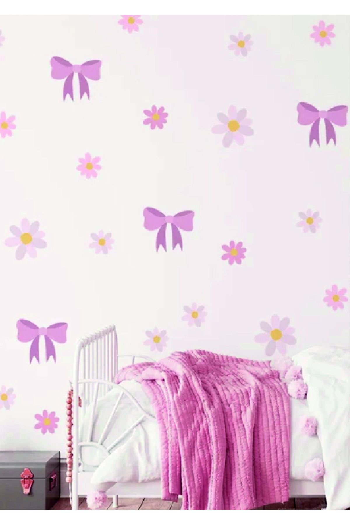 Pembe Kurdelela Çiçekleri Çocuk Odası Duvar Stickeri - 50 x 100