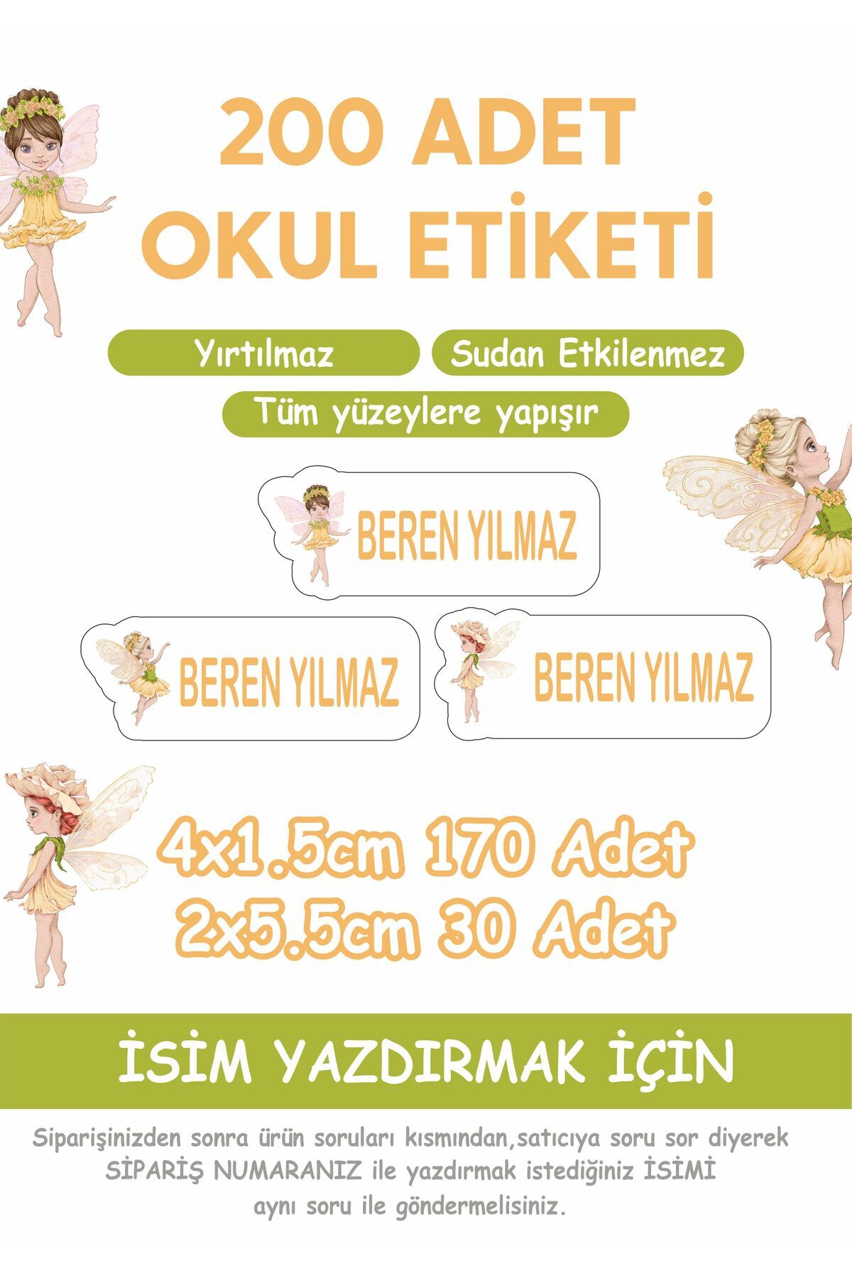 Peri Kızı Temalı 200 Adet Okul Etiketi Kalem Defter Özel Isim Yazılabilen Etiket -
