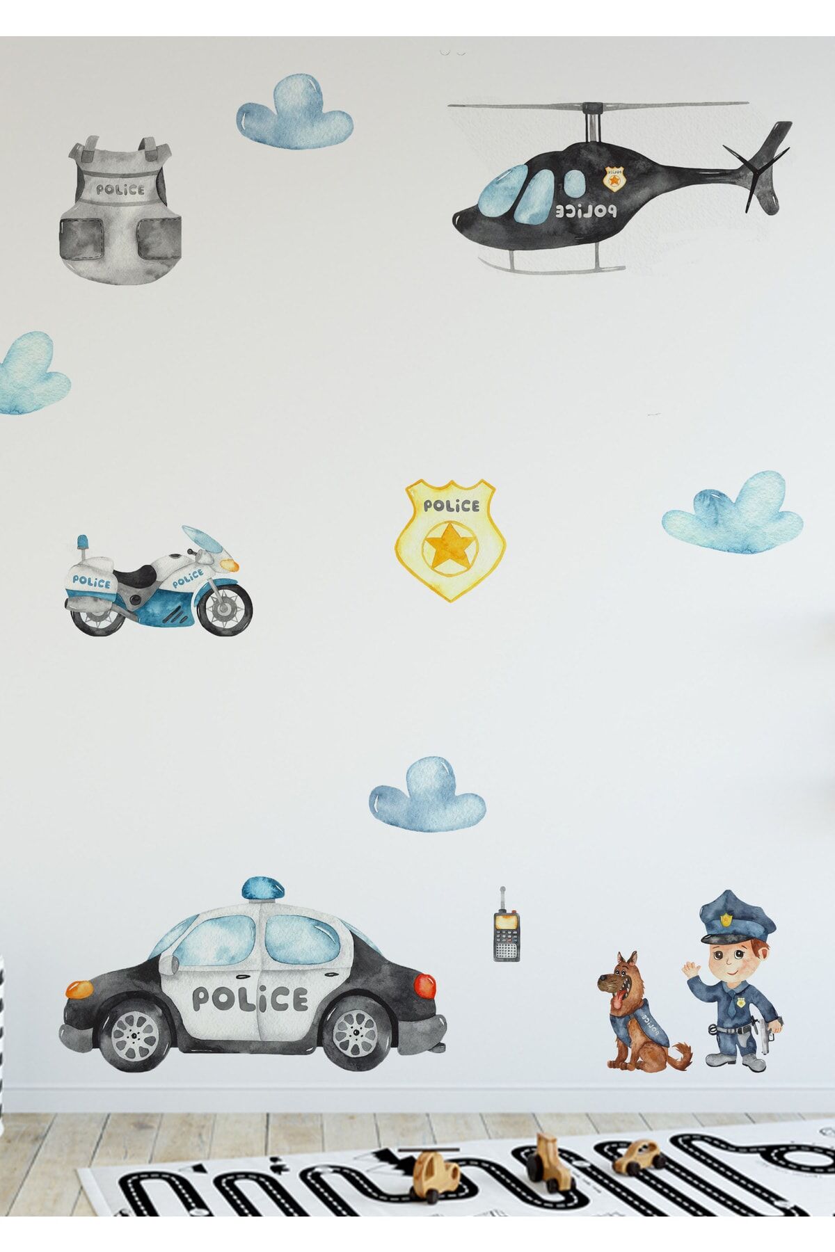 Police Ekibi Çocuk Odası Duvar Stickerı - Tek Ebat