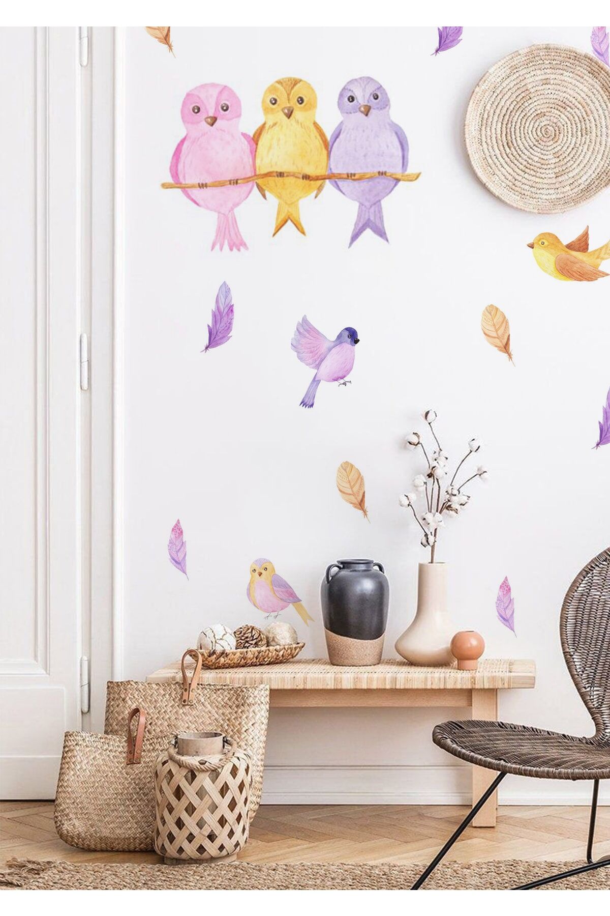 Renkli Kuşlar Çocuk Odası Duvar Stickerı - Tek Ebat