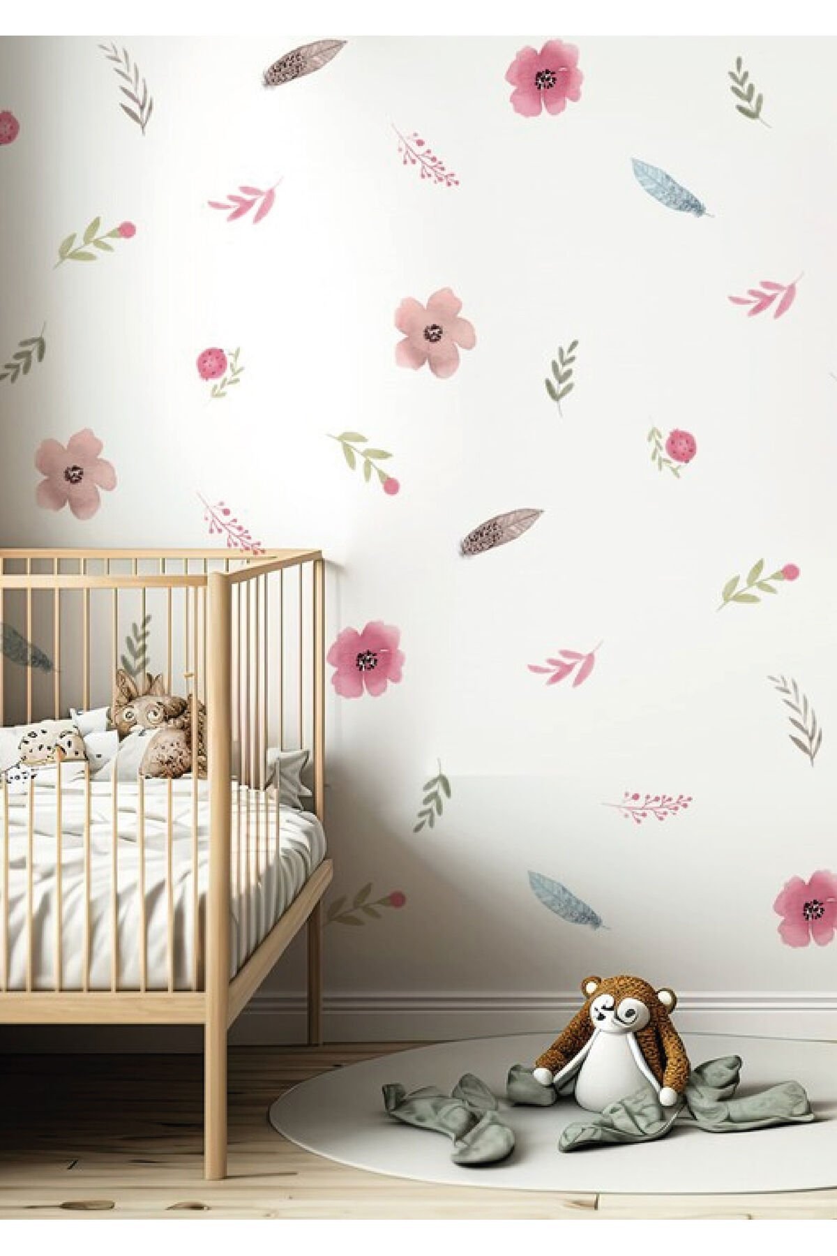 Renkli Tüyler ve Çiçekler Çocuk Odası Duvar Stickerı - 60 x 100