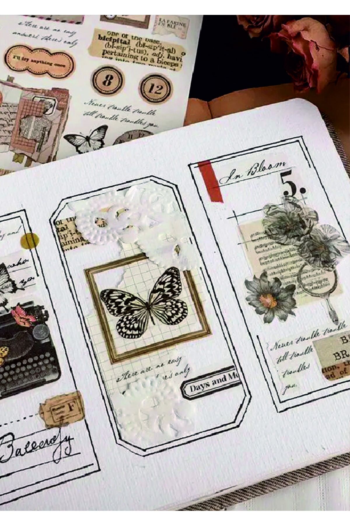 Retro Çiçek Kelebek 6'Lİ Set Çıkartmaları Ajanda Bullet Journal için Suya Dayanıklı Sticker -