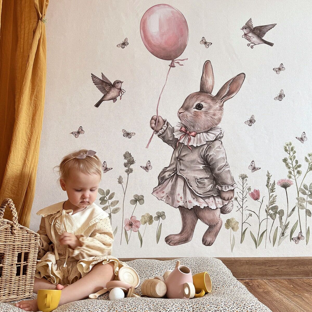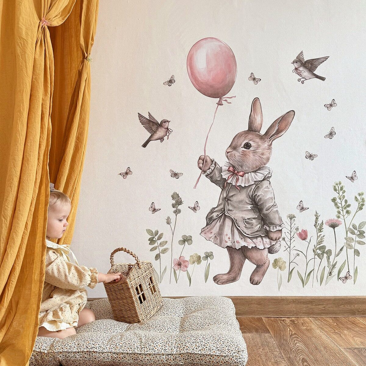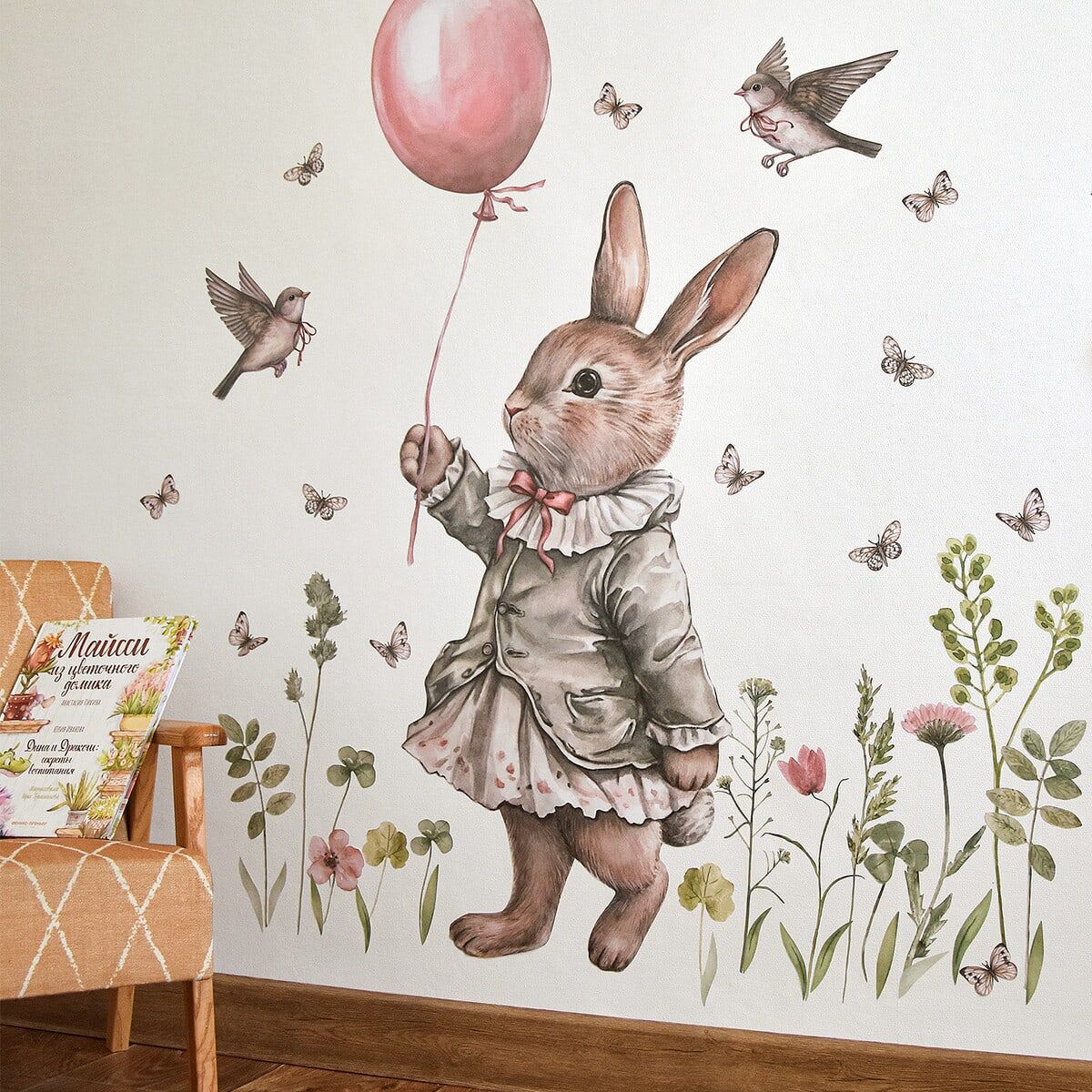 Retro Tavşanın Bahçesi Duvar Sticker