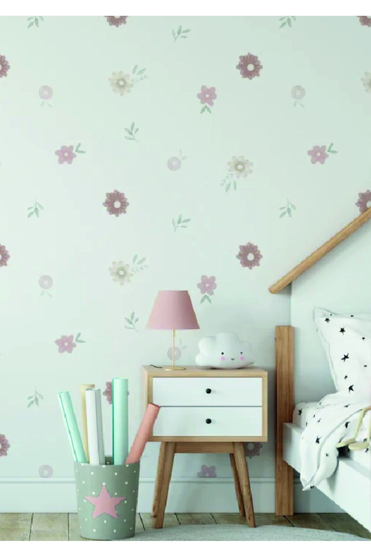 Sessiz Suluboya Boyalı Çiçekler Çocuk Odası Duvar Stickeri - 50 x 100
