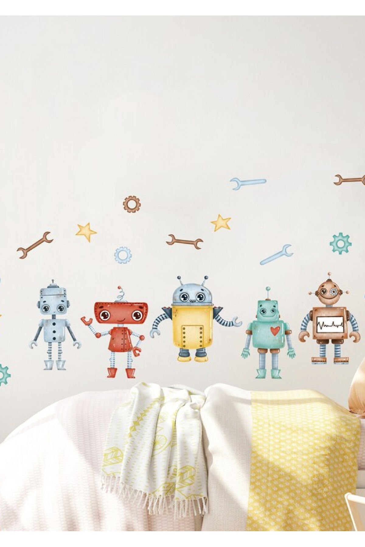 Sevimli Robotlar Çocuk Odası Duvar Stickerı - 50 x 100