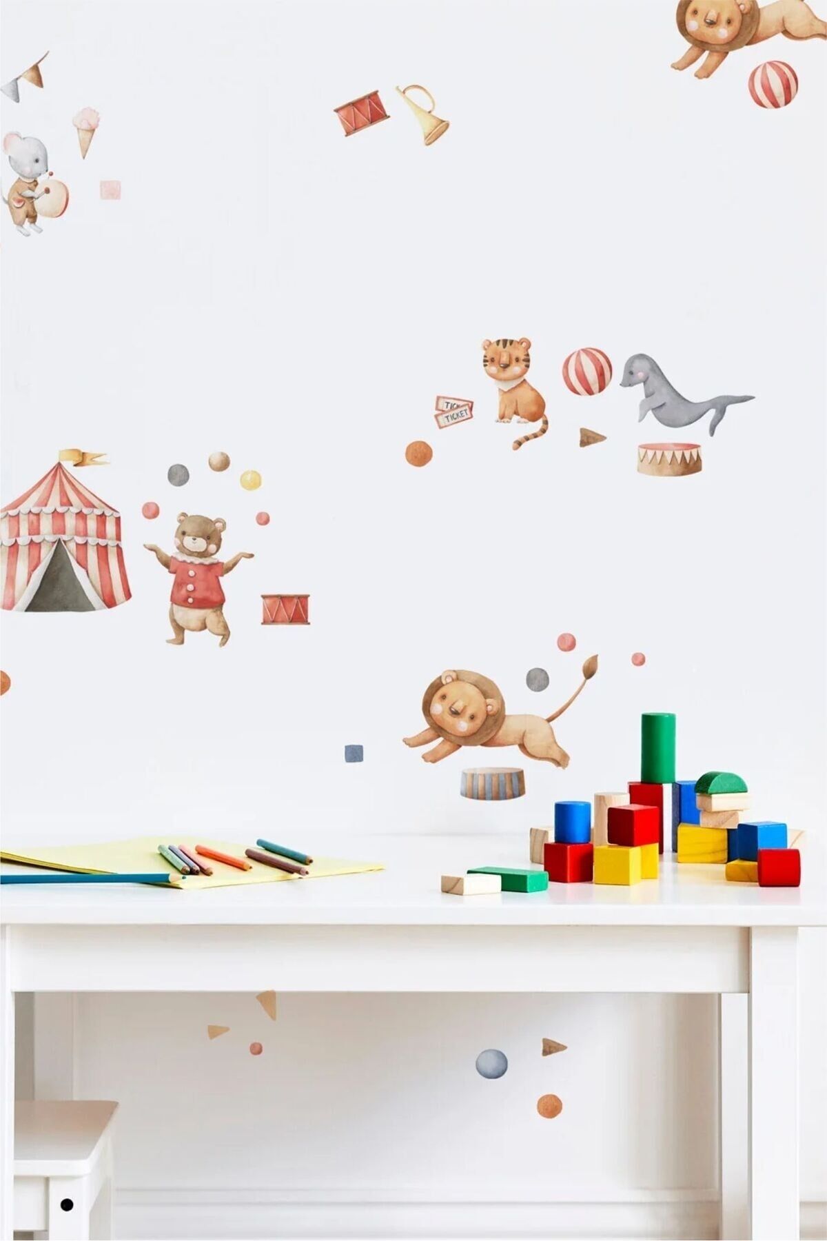 Sirk Hayvanları Çocuk Odası Duvar Stickerı - 50 x 100