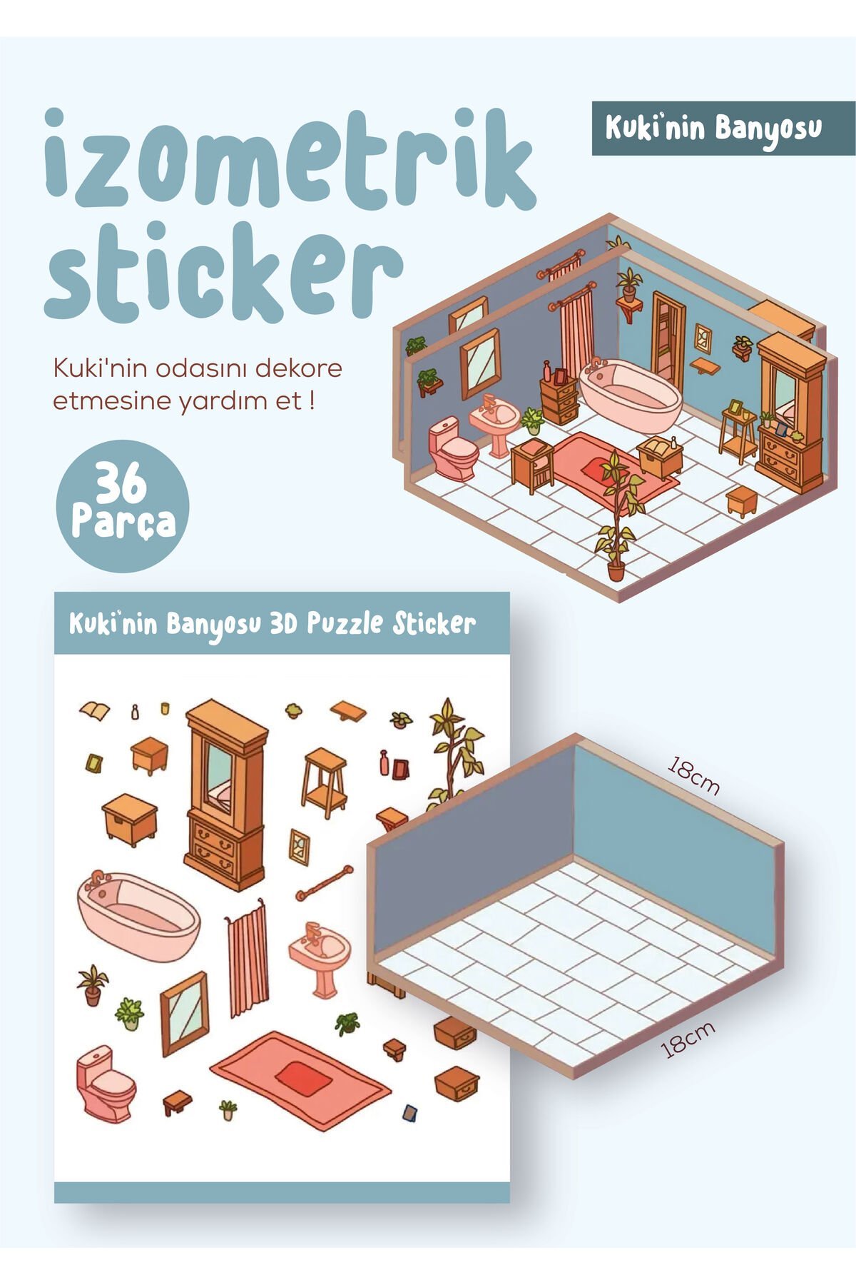 Sticker Puzzle 36 Parça İzometrik Sticker - Kuki'nin Banyosu -