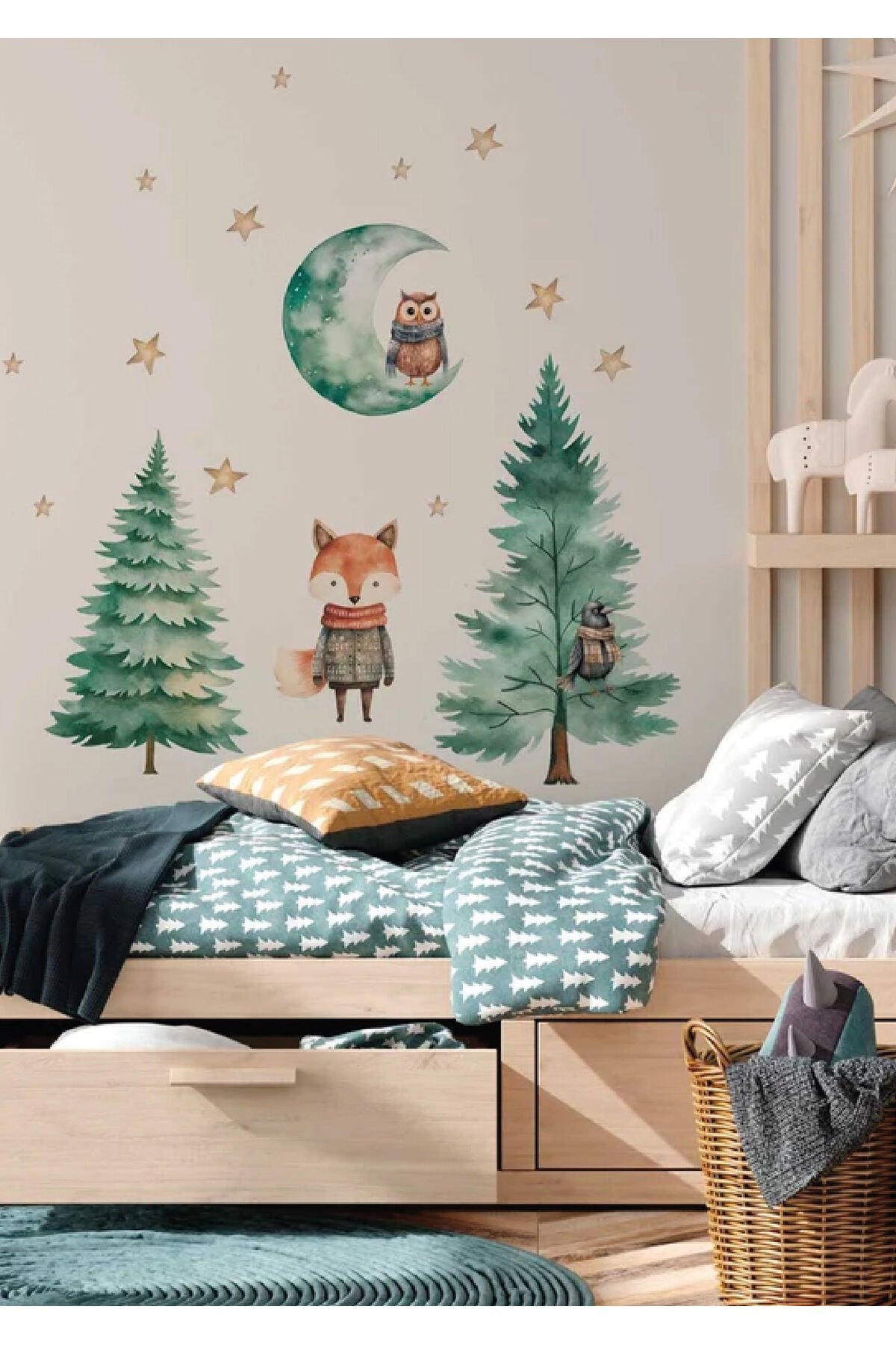 Tilkili Gece Ormanları Çocuk Odası Duvar Stickerı - 70 x 100