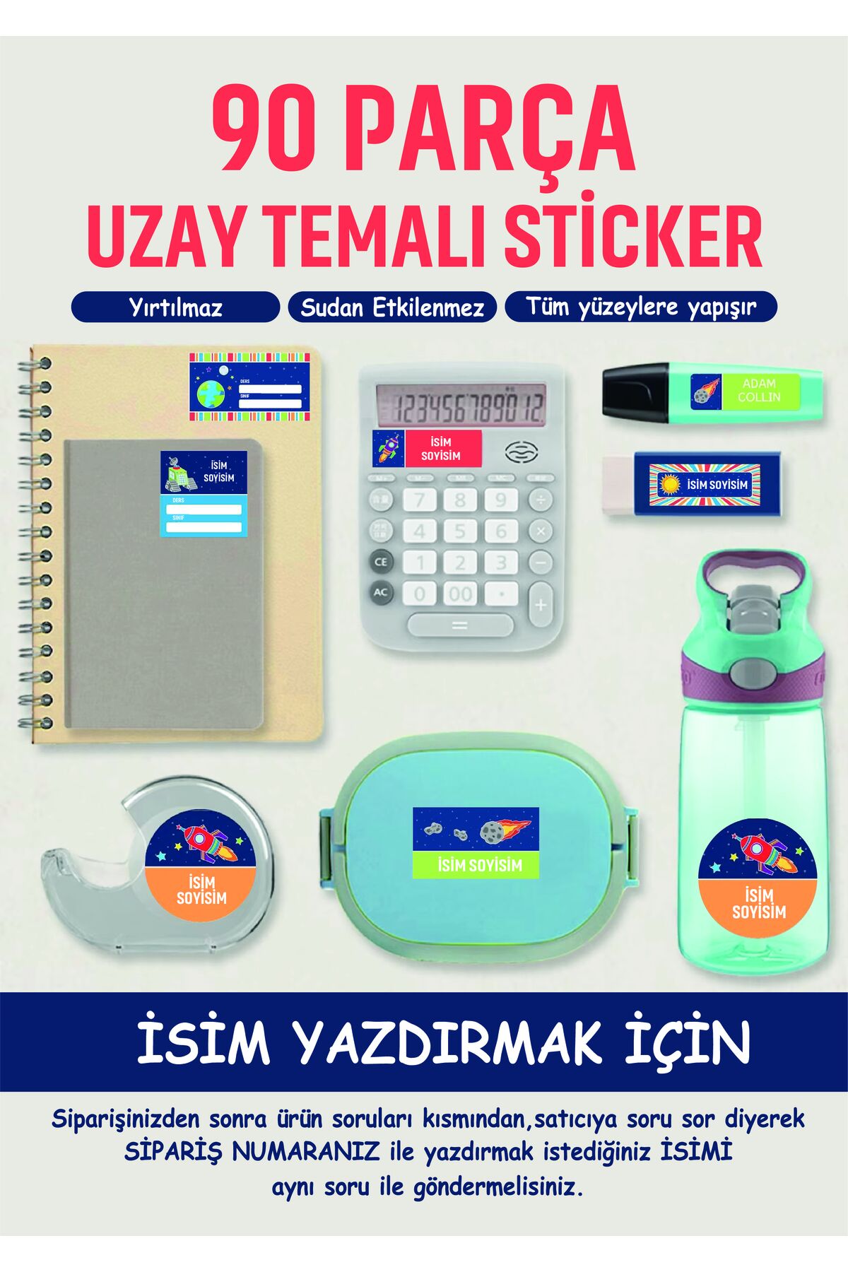 Uzay Temalı Okul Etiketi 90 Adet Kalem Defter Özel Isim Yazılabilen Etiket -