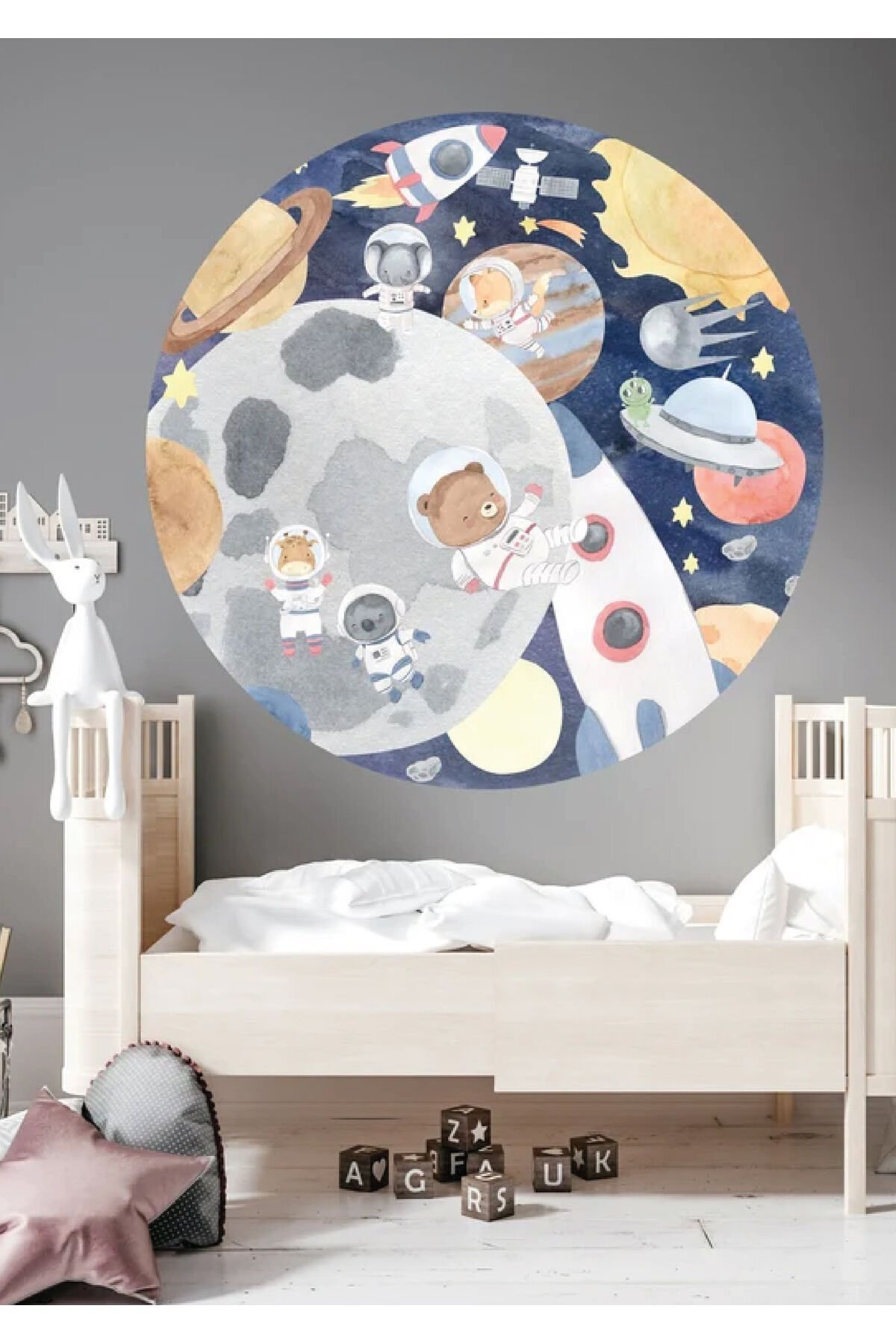 Uzaya Çıkan Hayvanlar Çocuk Odası Duvar Stickerı - Tek Ebat