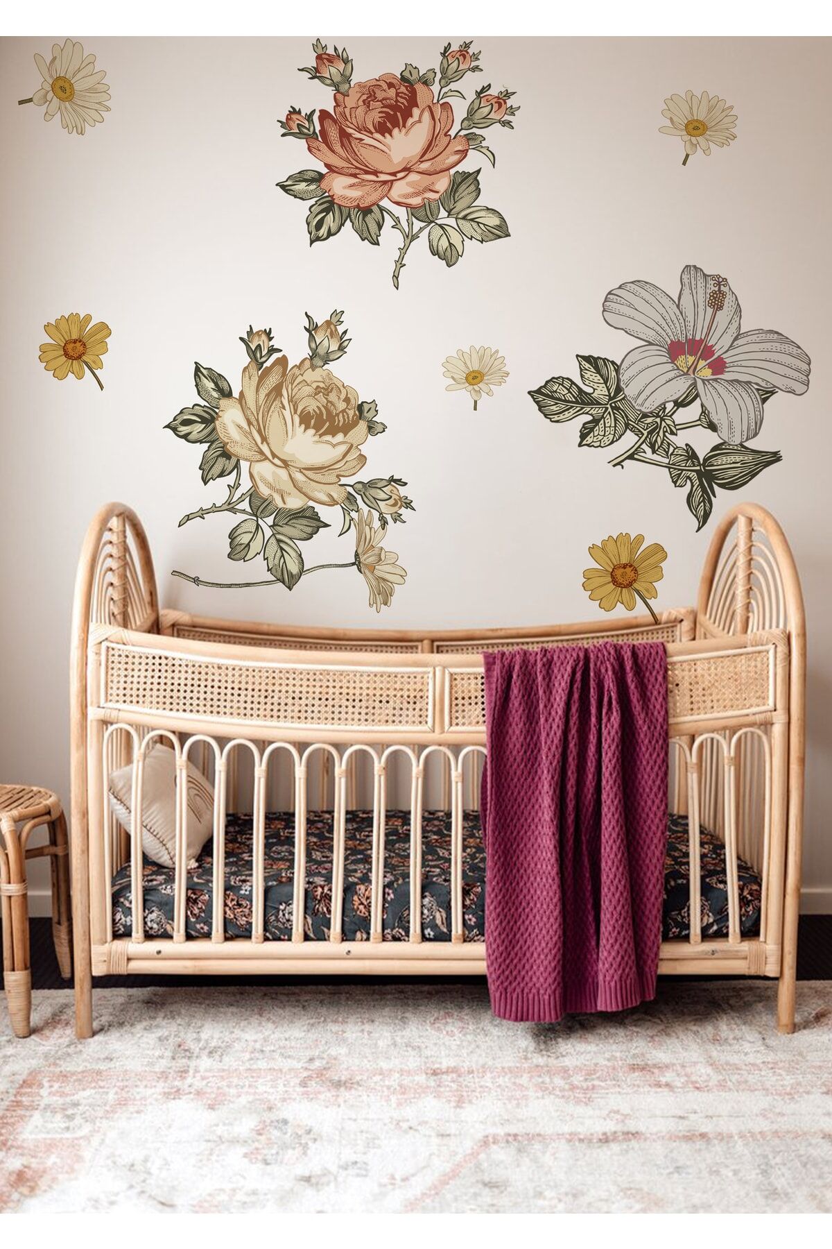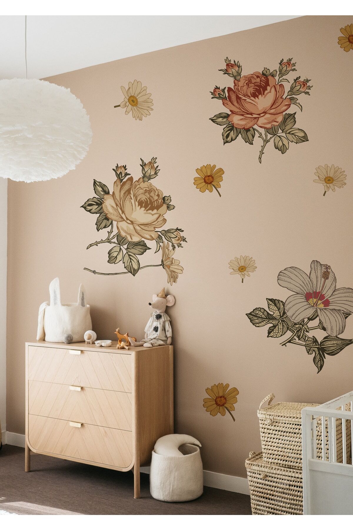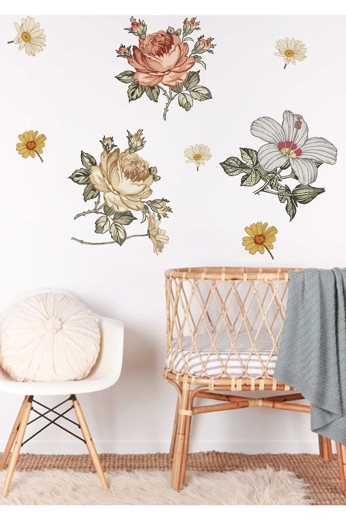 Vintage Çicek Duvar Stickerı - Tek Ebat