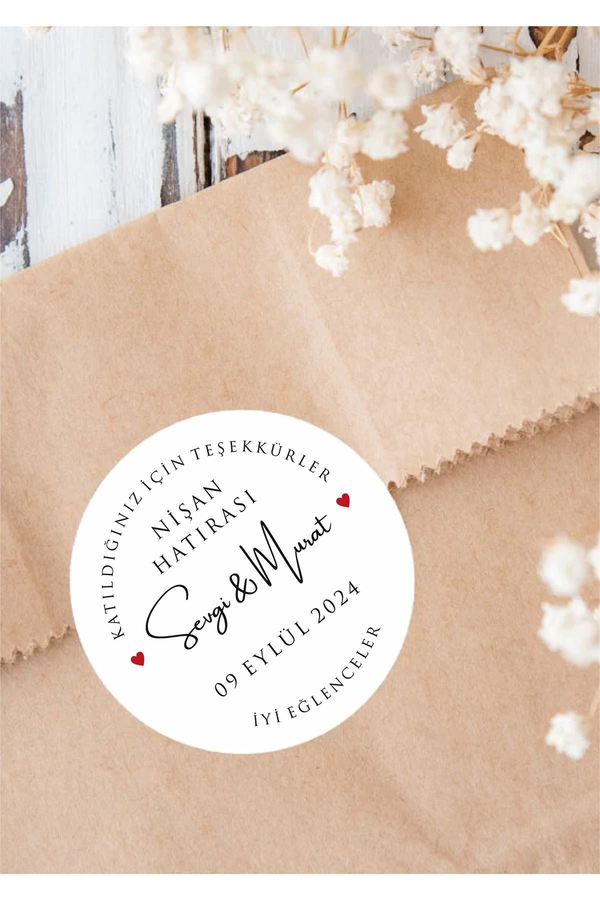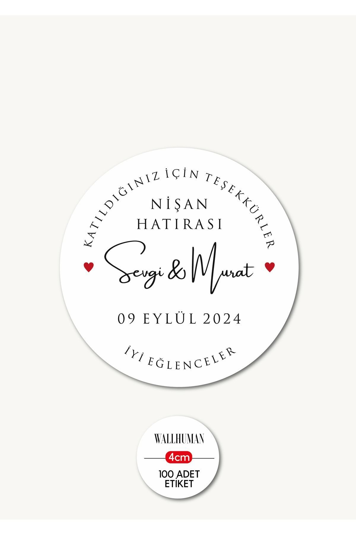 Yapışkanlı İsimli Etiket - Söz, Nişan, Düğün - 4cm 100 Adet -