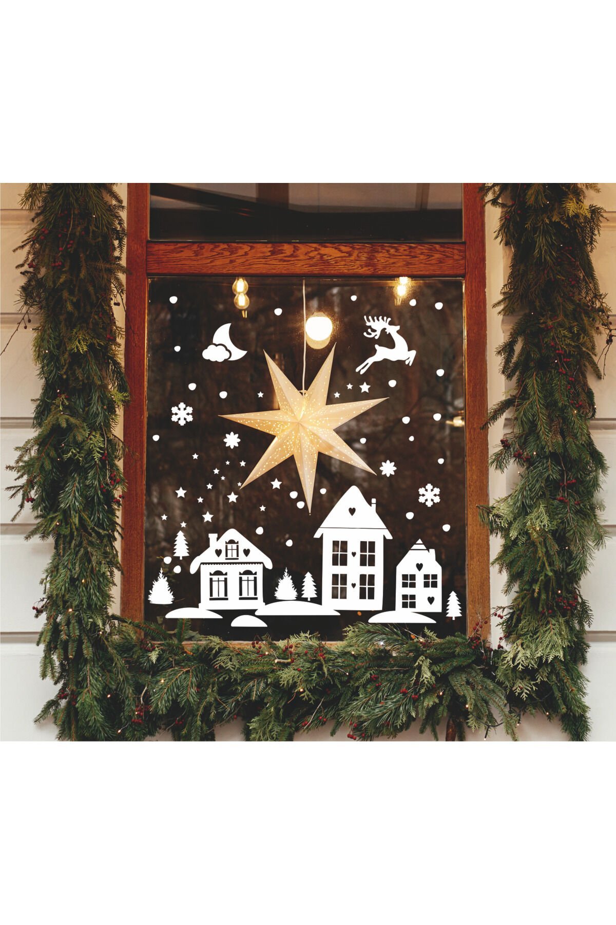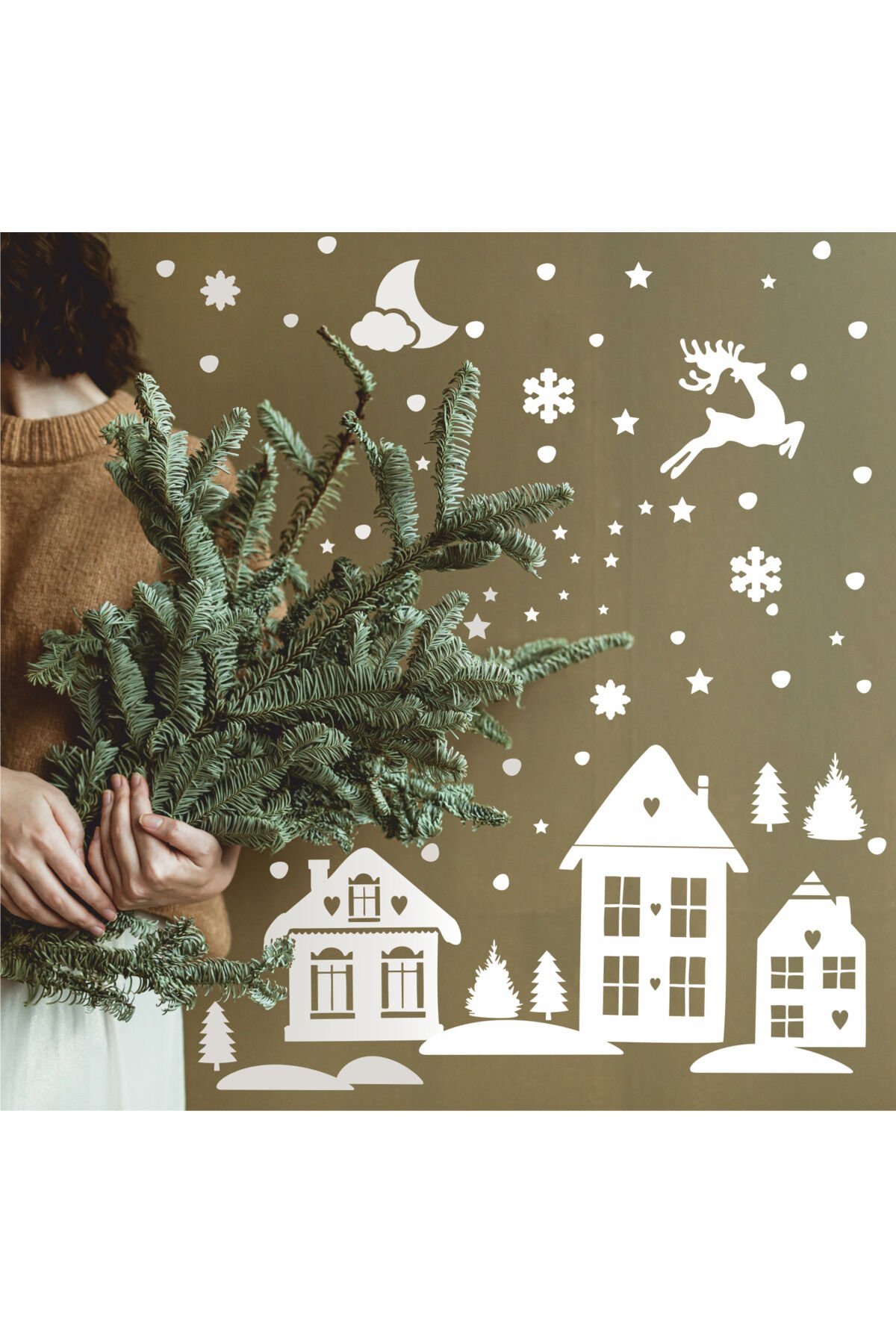 Yılbaşı-Beyaz Ev Çocuk Bebek Odası Sticker Seti , Yılbaşı Süsü Yeni Yıl Kış Konsepti -