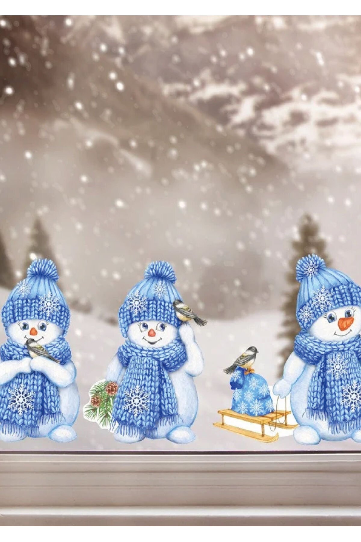 Yılbaşı-Mavi Kardan Adamlar Çocuk Bebek Odası Sticker Seti , Yılbaşı Süsü Yeni Yıl Kış Konsepti -