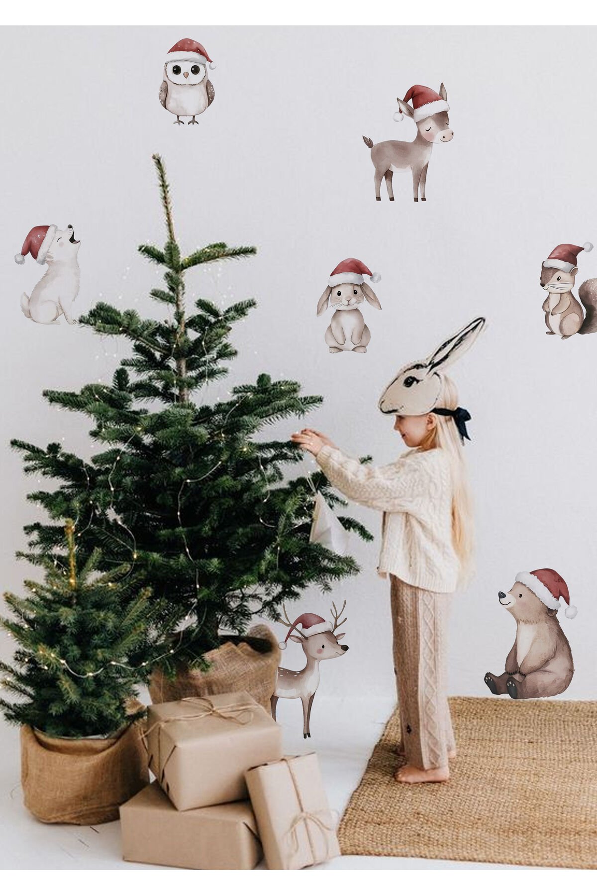 Yılbaşı-Noel Dostları Çocuk Bebek Odası Sticker Seti , Yılbaşı Süsü Yeni Yıl Kış Konsepti -