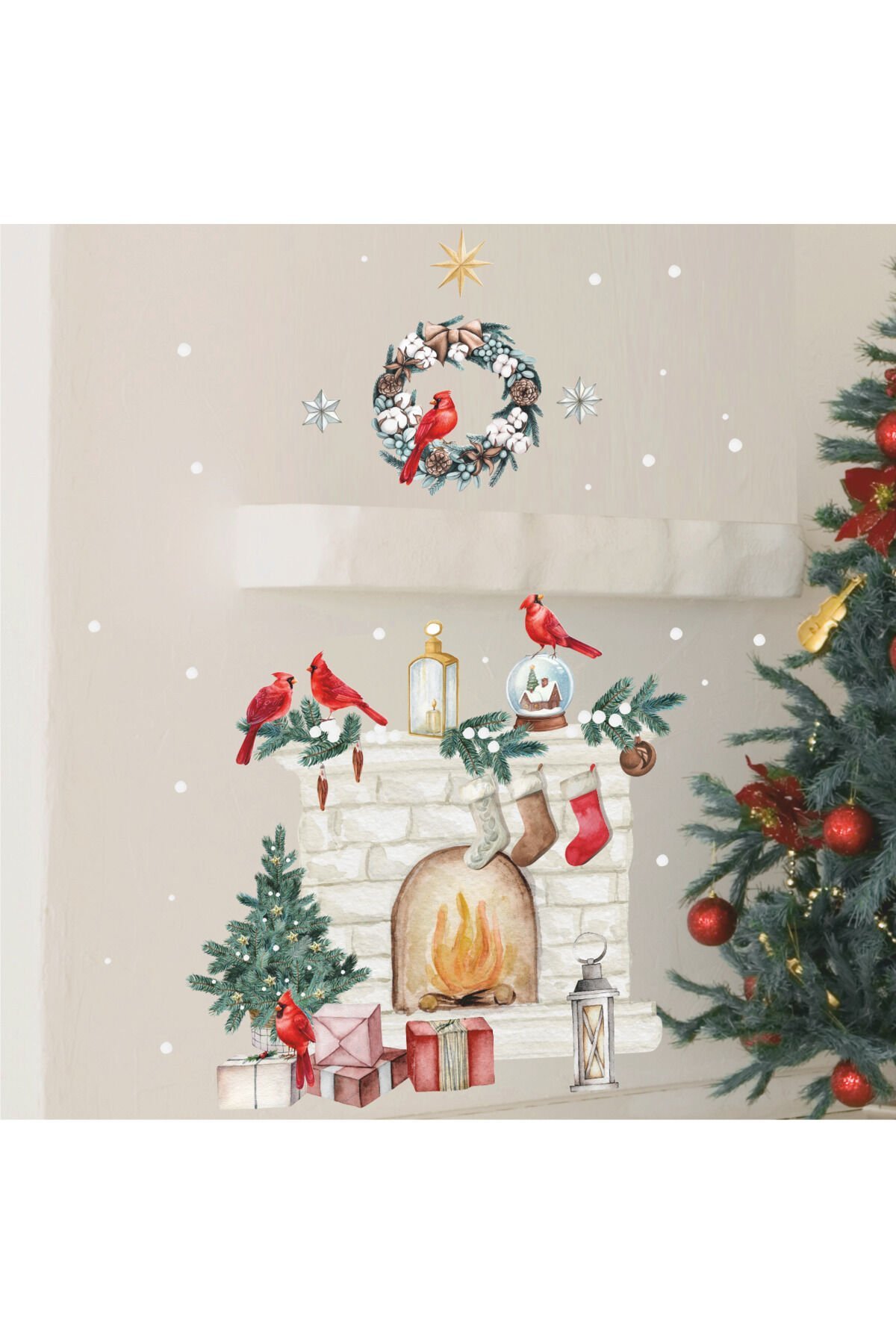 Yılbaşı-Noel Şömine Çocuk Bebek Odası Sticker Seti , Yılbaşı Süsü Yeni Yıl Kış Konsepti -