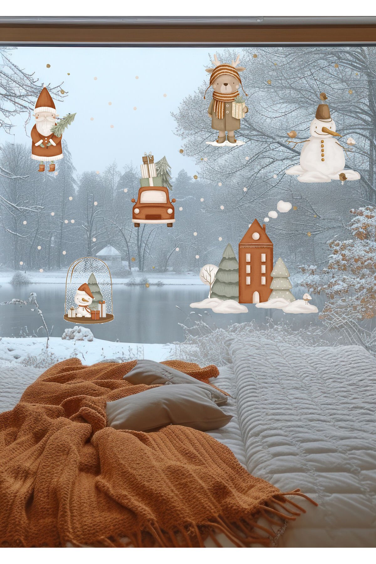 Yılbaşı-Noel Zamanı Çocuk Bebek Odası Sticker Seti , Yılbaşı Süsü Yeni Yıl Kış Konsepti -