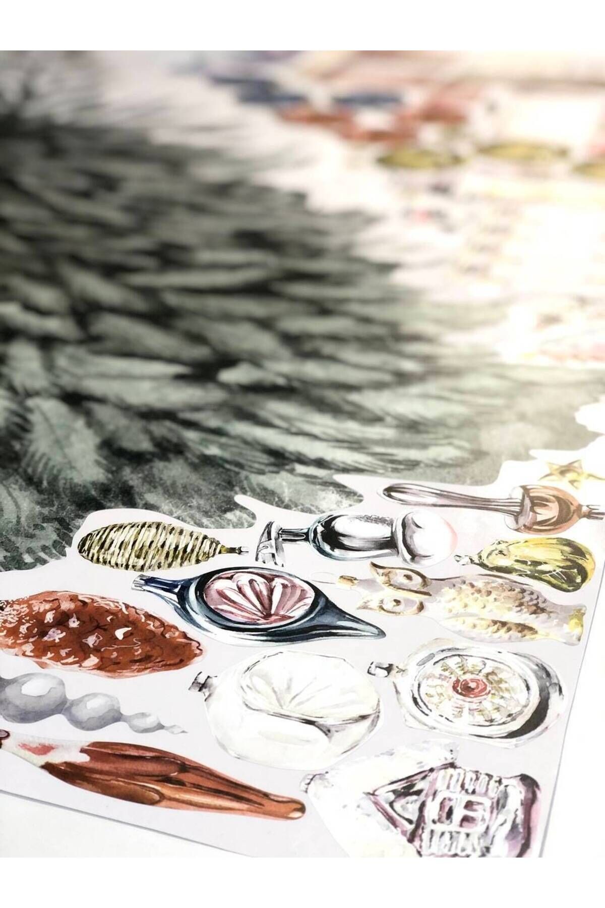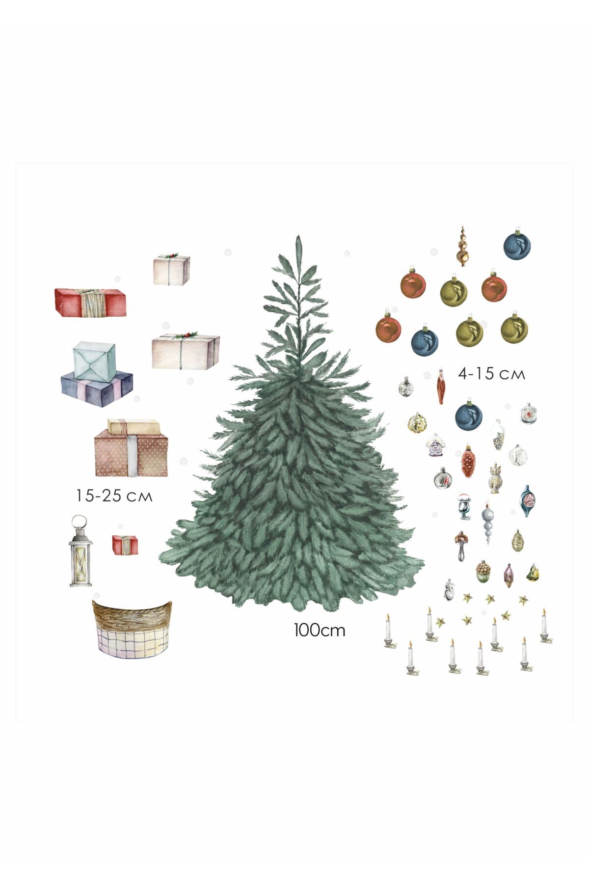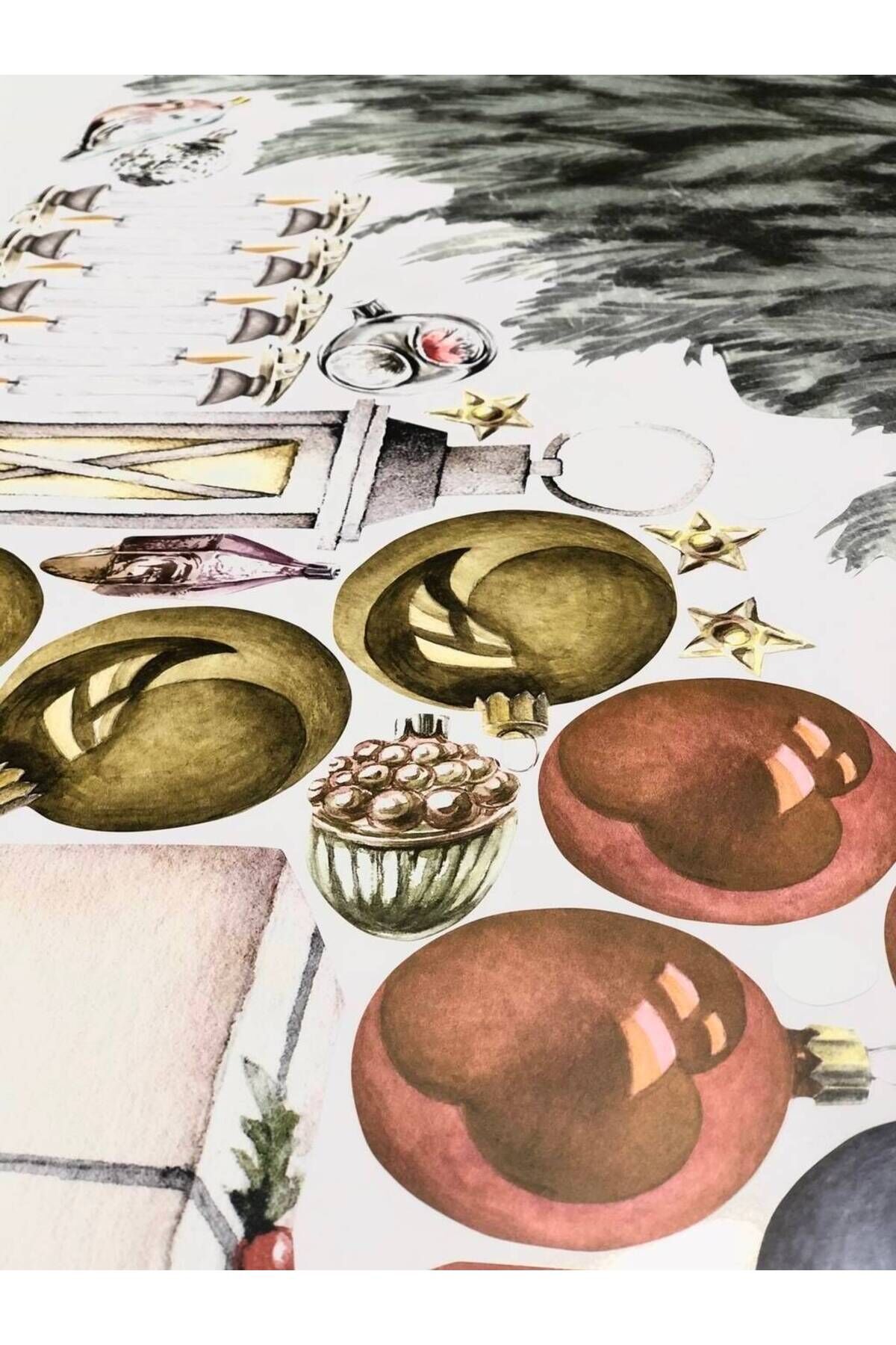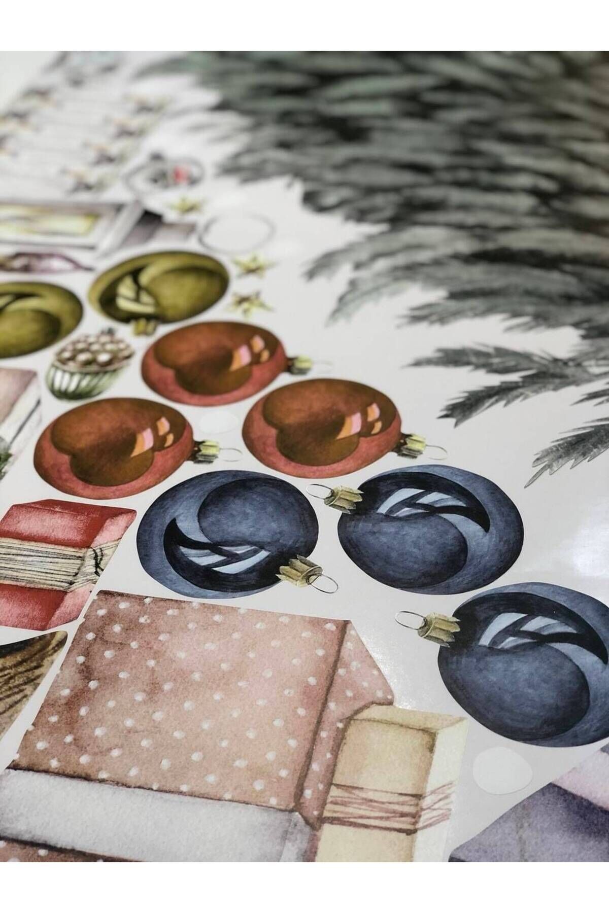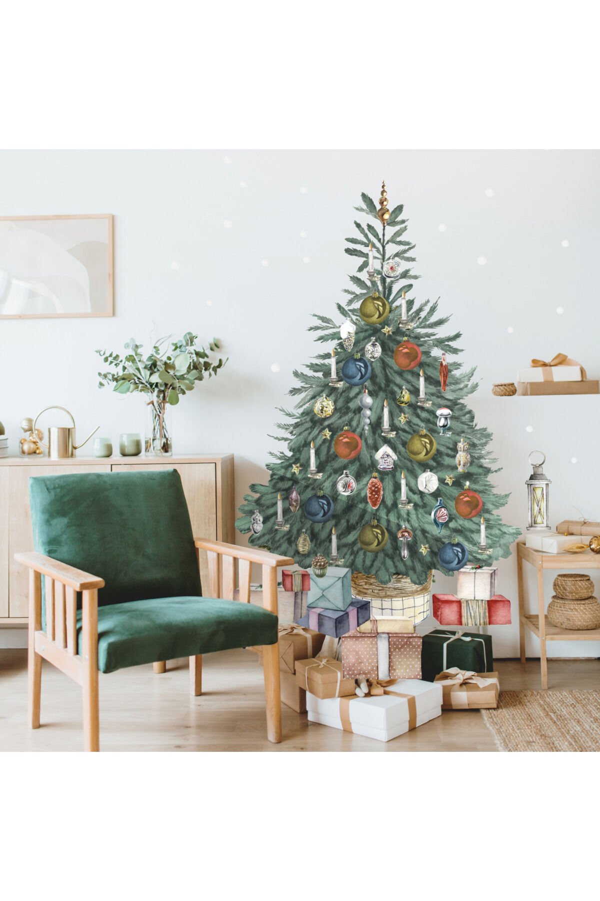 Yılbaşı-Retro Yılbaşı Ağacı Çocuk Bebek Odası Sticker Seti , Yılbaşı Süsü Yeni Yıl Kış Konsepti -
