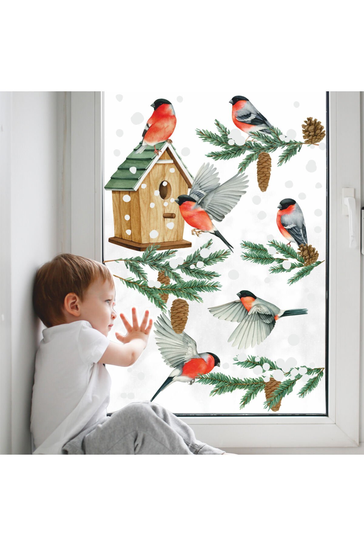 Yılbaşı-Şakrak Kuşları Çocuk Bebek Odası Sticker Seti , Yılbaşı Süsü Yeni Yıl Kış Konsepti -
